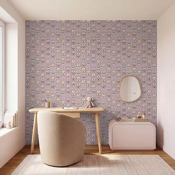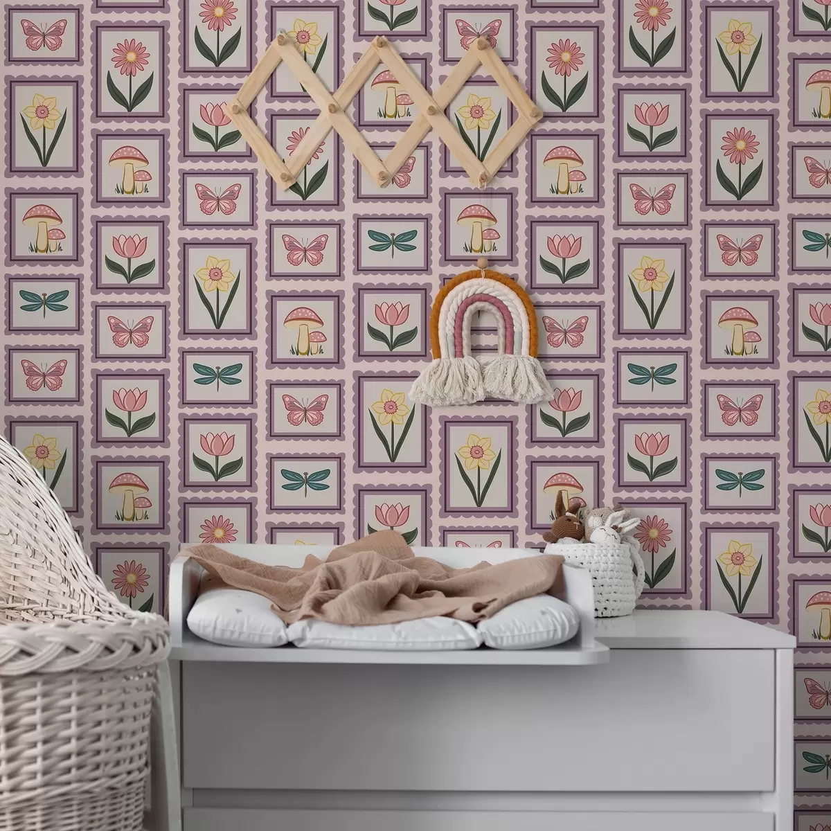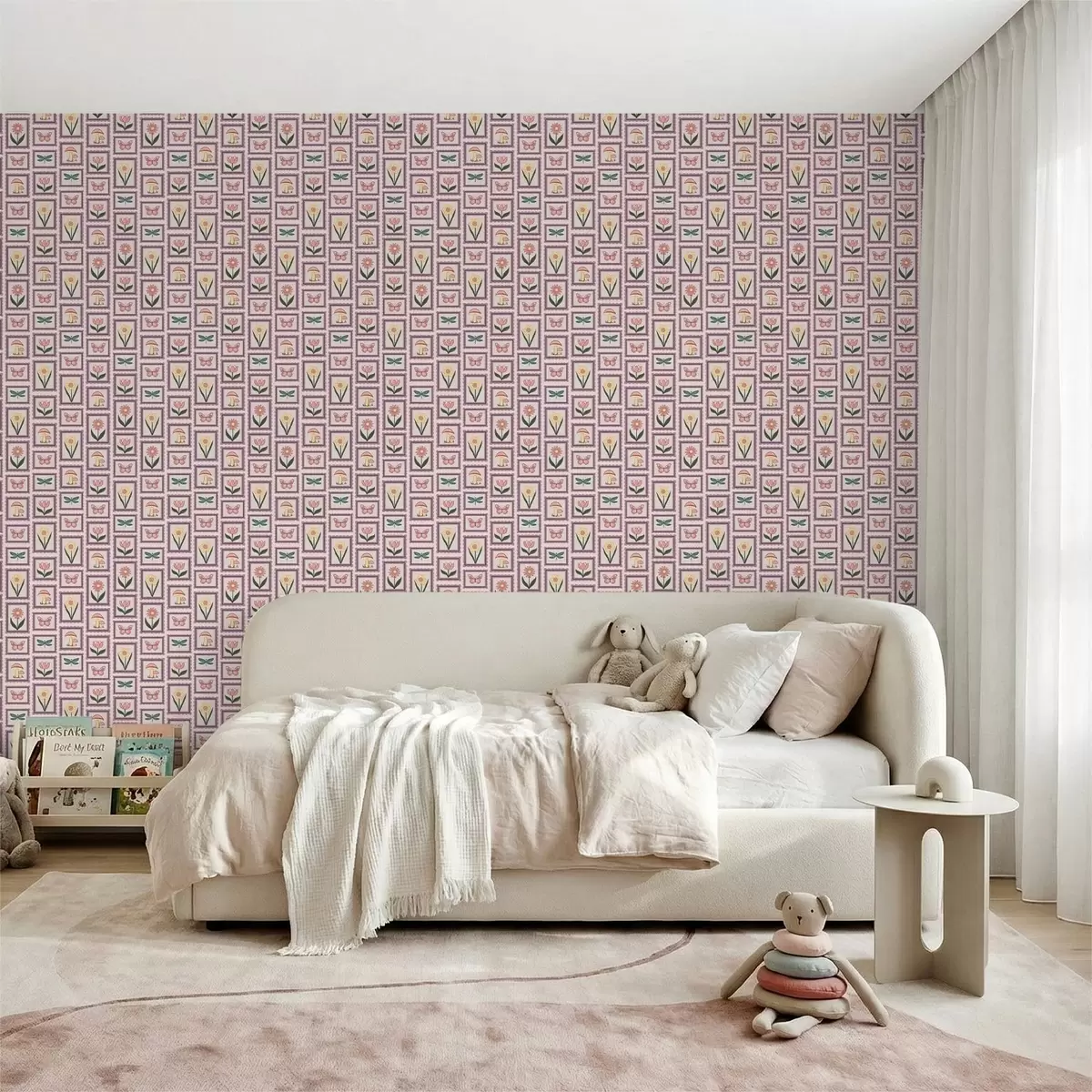 Tapete Gerahmte Illustrationen in Fliederfarben Nr. a01175v1
