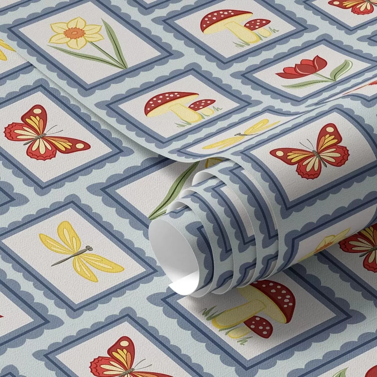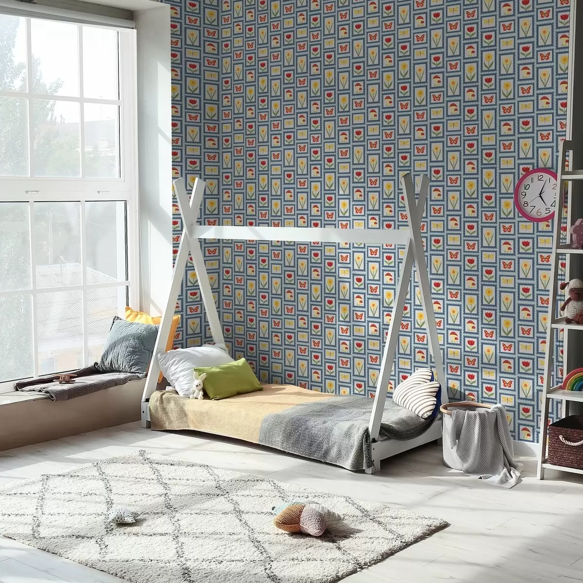 Tapete Gerahmte Illustrationen in Blautönen Nr. a01175v2