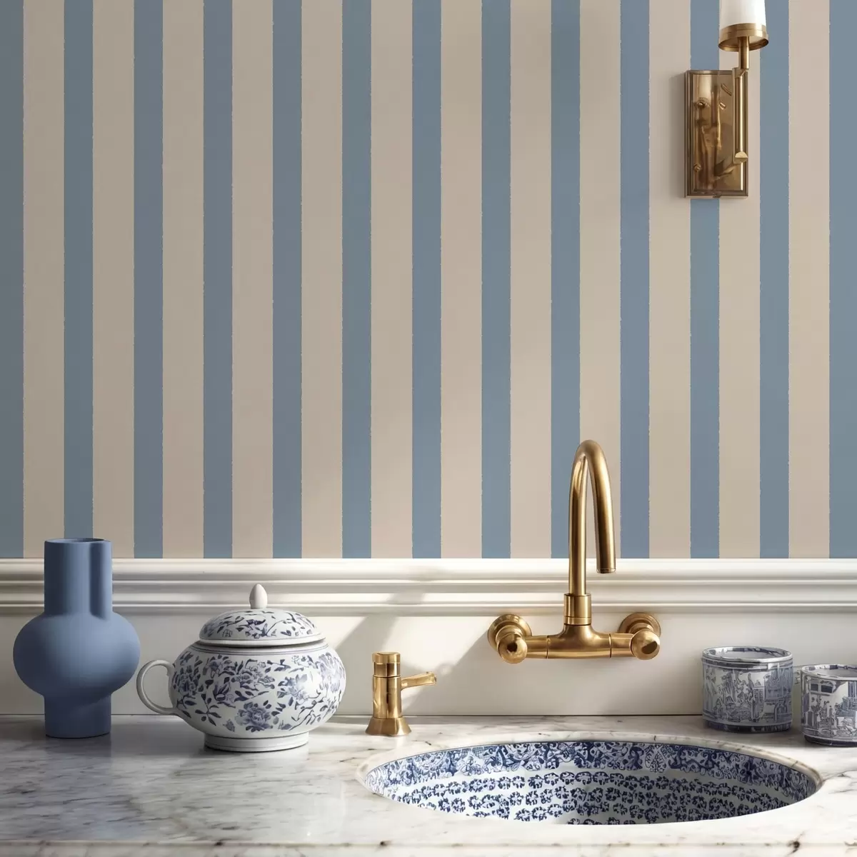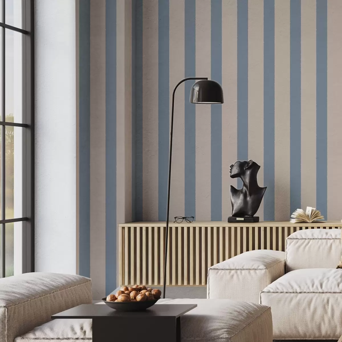 Tapete Beige und hellblaue Längsstreifen Nr. a01180v3