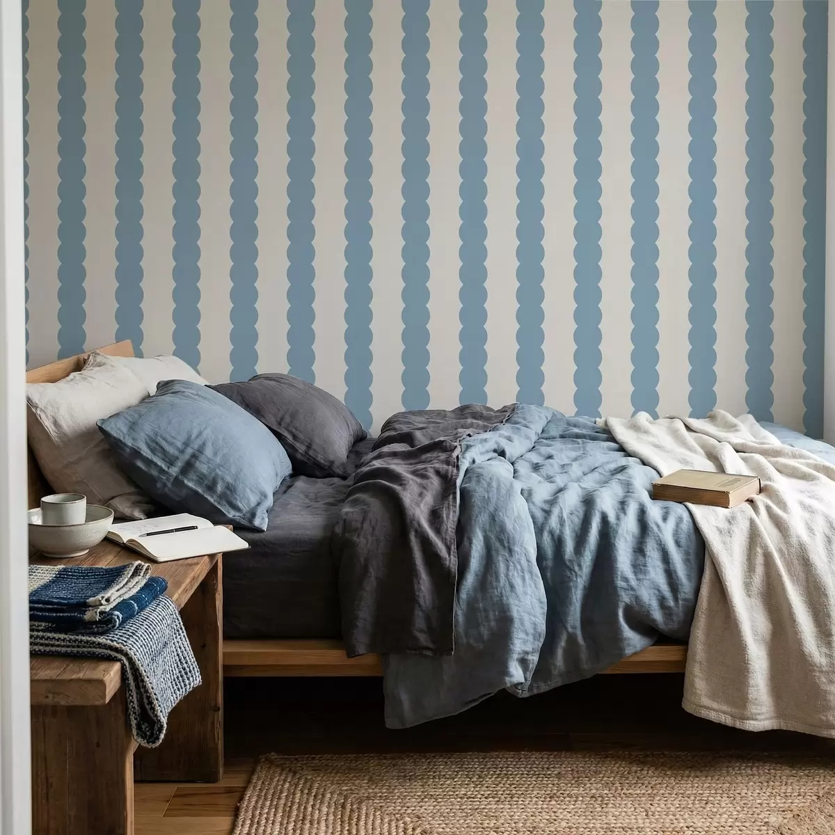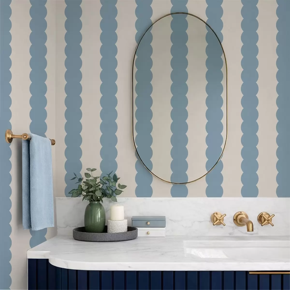 Tapete Blaue Wellenstreifen im minimalistischen Stil Nr. a01182