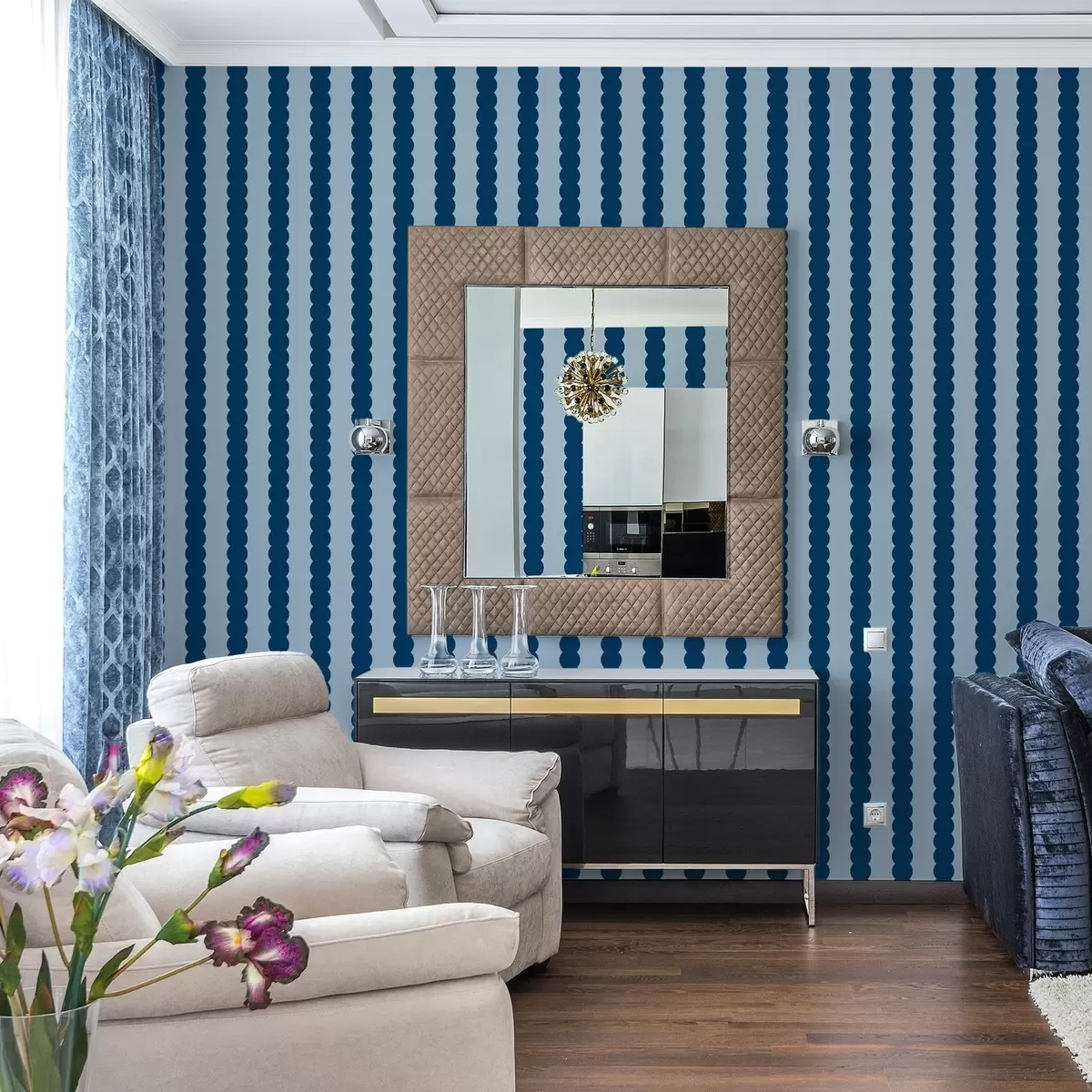 Tapete Dunkelblaue Wellenstreifen im minimalistischen Stil Nr. a01182v3