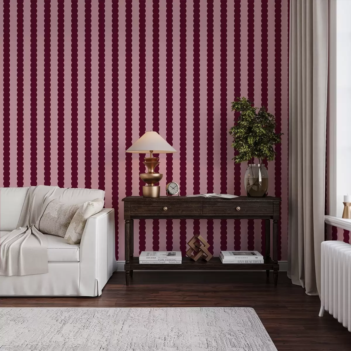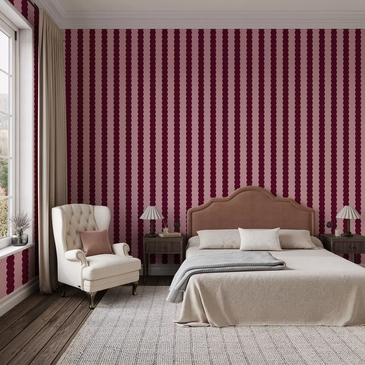 Tapete Burgunderrote Wellenstreifen im minimalistischen Stil Nr. a01182v5