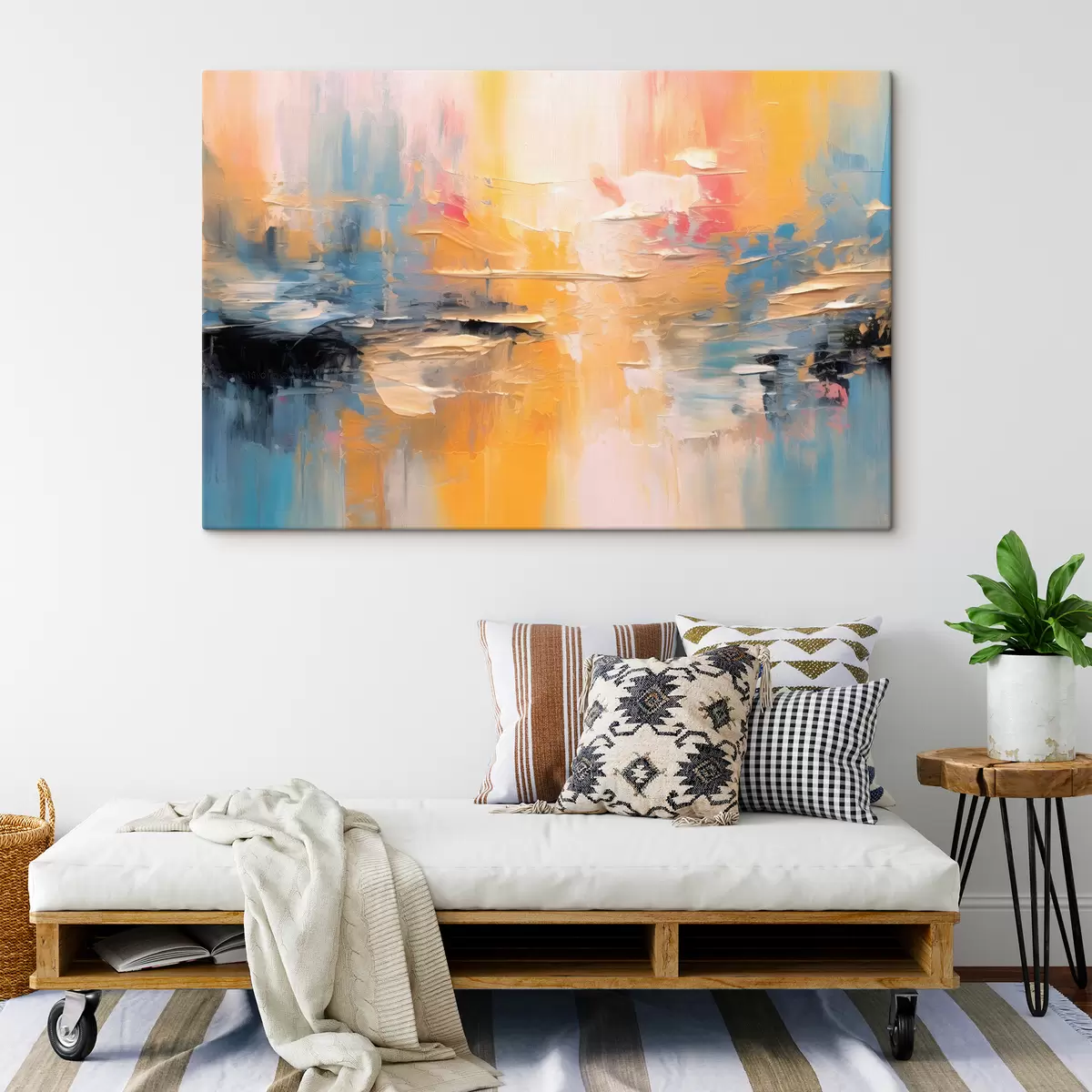 Das Gemälde kann sofort nach Erhalt aufgehängt werden. Das Gemälde wird auf einen 2 cm breiten Holzkeilrahmen aufgespannt.