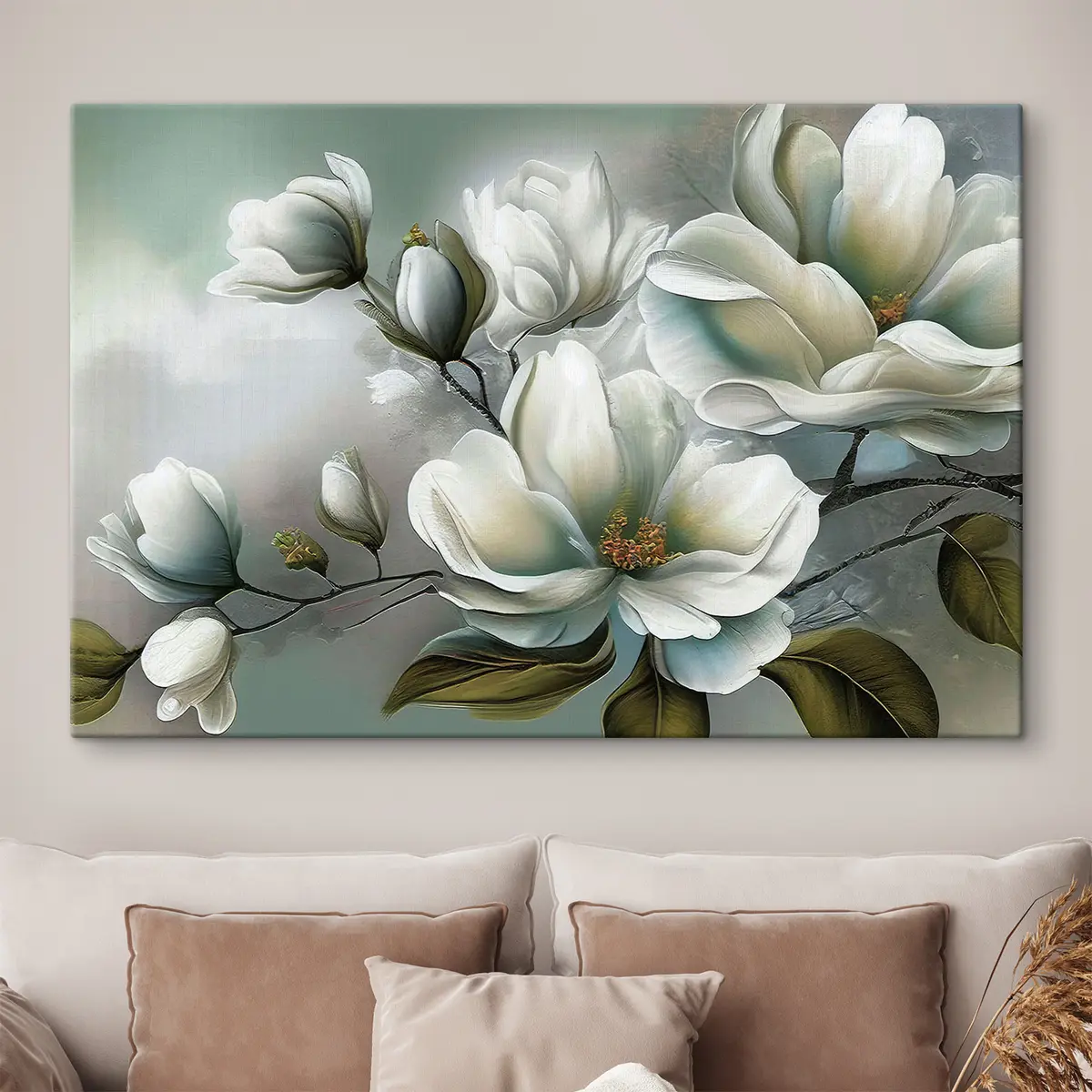 Drei Materialtypen stehen zur Verfügung: Economic Canvas - ein dichtes und haltbares Material für den Digitaldruck, identisch mit Malerleinwand, wasserfeste Oberfläche, realistische Wiedergabe von Details, mittelkörniges Material. Premium Canvas - die Textur ähnelt der einer Malerleinwand (verwobene kleine Fäden). Weiche, detaillierte Wiedergabe des Bildes auf einer matten Oberfläche. Eco-Premium - hochwertiges Gewebe aus 100% Baumwolle. Dank der natürlichen Baumwollfasern ist das Material langlebig und verschleißfest. Hervorragende Farbwiedergabe und Detailtreue.