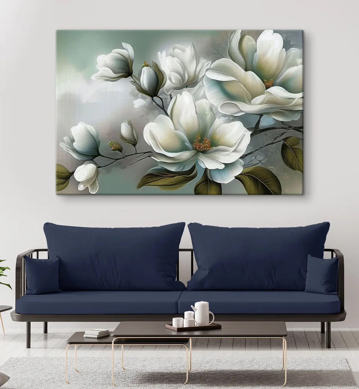 Wandbilder Weiße Blumen auf blauem Hintergrund Art. s35494