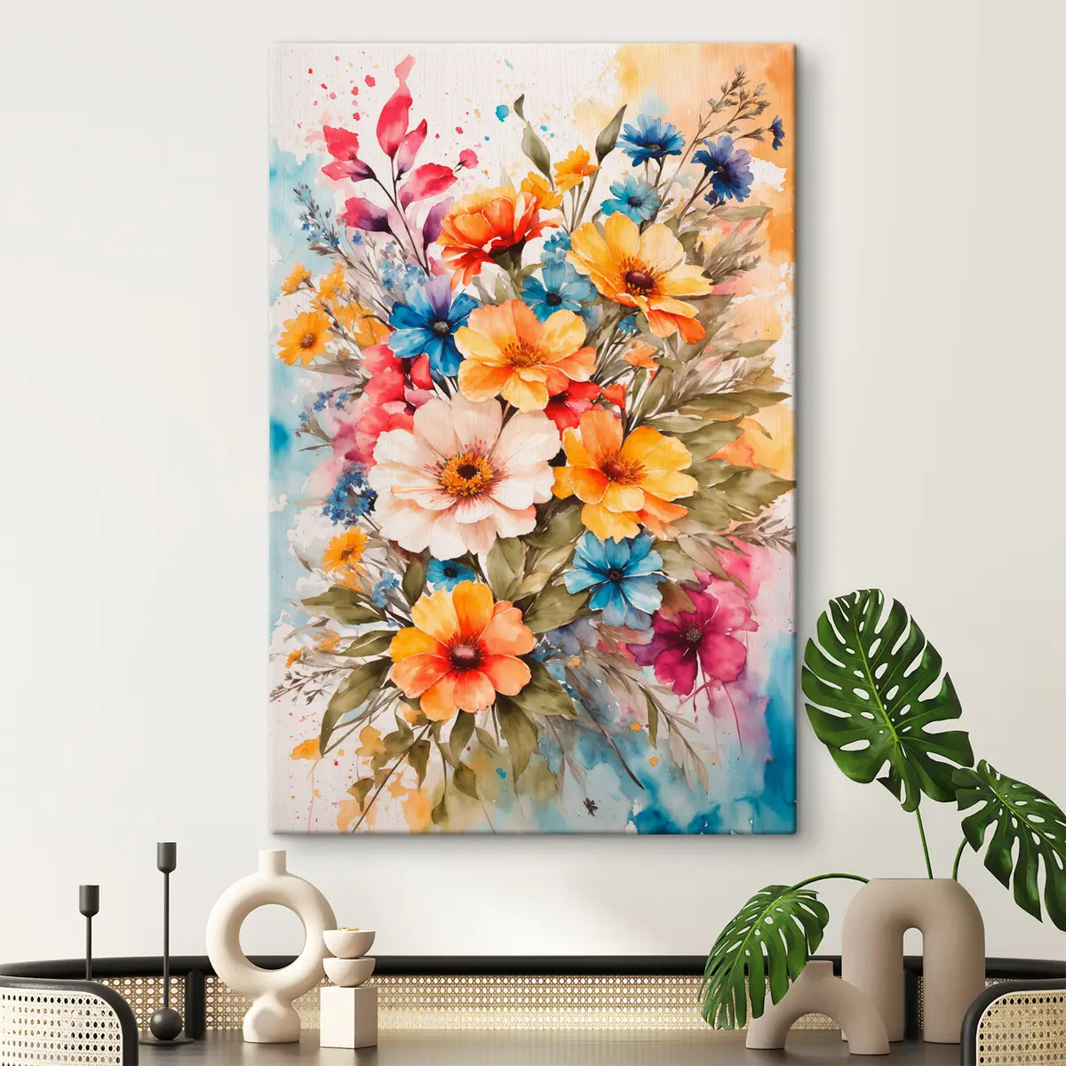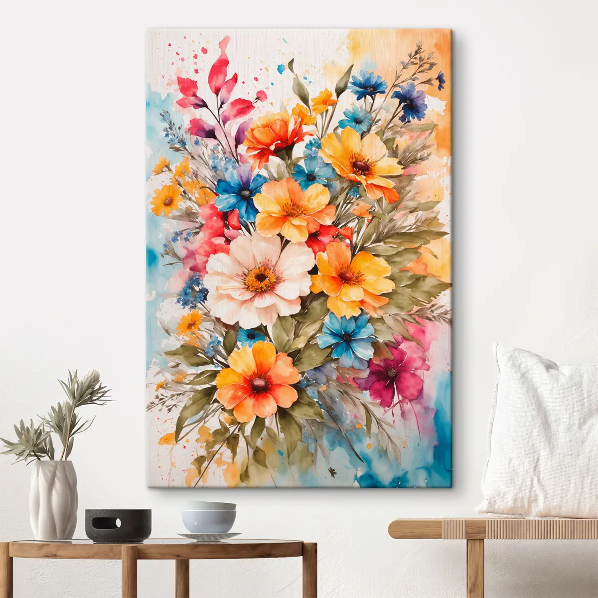 Wandbilder Aquarellstrauß aus rosa, gelben, blauen und roten Blumen Art. s36121