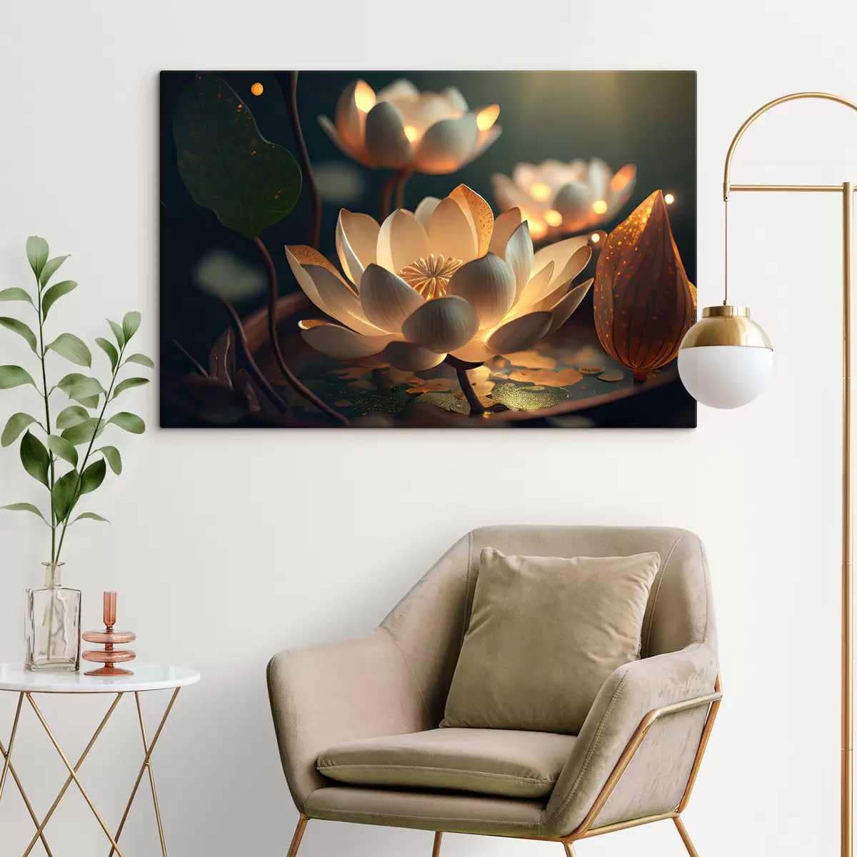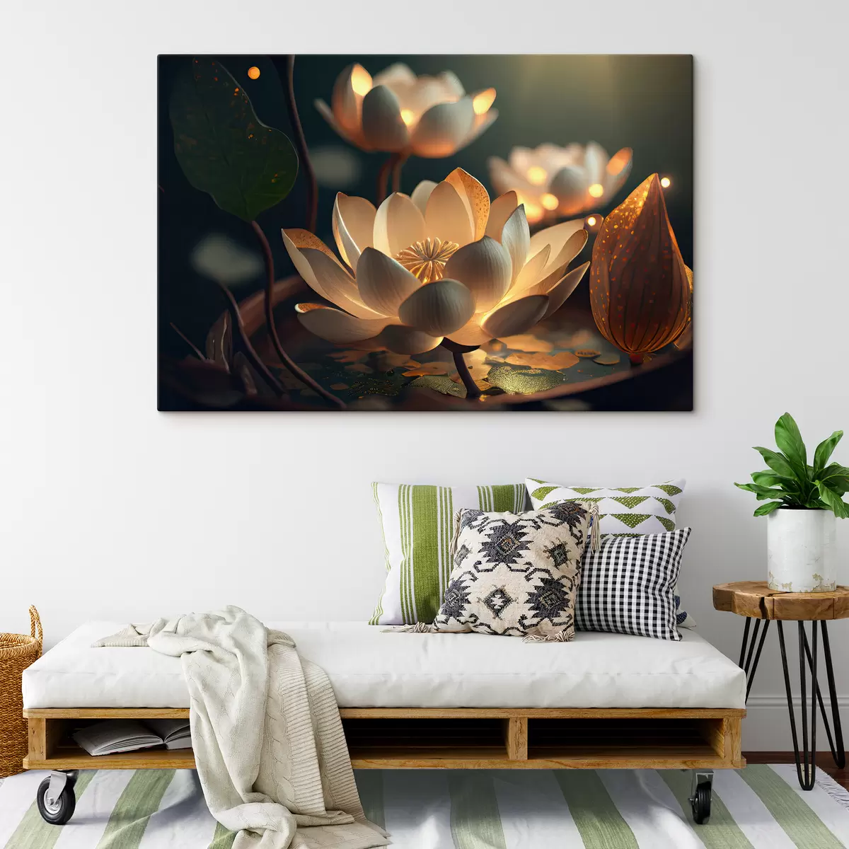 Drei Materialtypen stehen zur Verfügung: Economic Canvas - ein dichtes und haltbares Material für den Digitaldruck, identisch mit Malerleinwand, wasserfeste Oberfläche, realistische Wiedergabe von Details, mittelkörniges Material. Premium Canvas - die Textur ähnelt der einer Malerleinwand (verwobene kleine Fäden). Weiche, detaillierte Wiedergabe des Bildes auf einer matten Oberfläche. Eco-Premium - hochwertiges Gewebe aus 100% Baumwolle. Dank der natürlichen Baumwollfasern ist das Material langlebig und verschleißfest. Hervorragende Farbwiedergabe und Detailtreue.