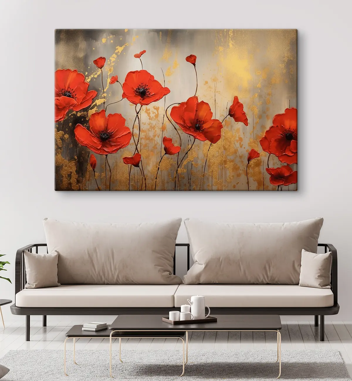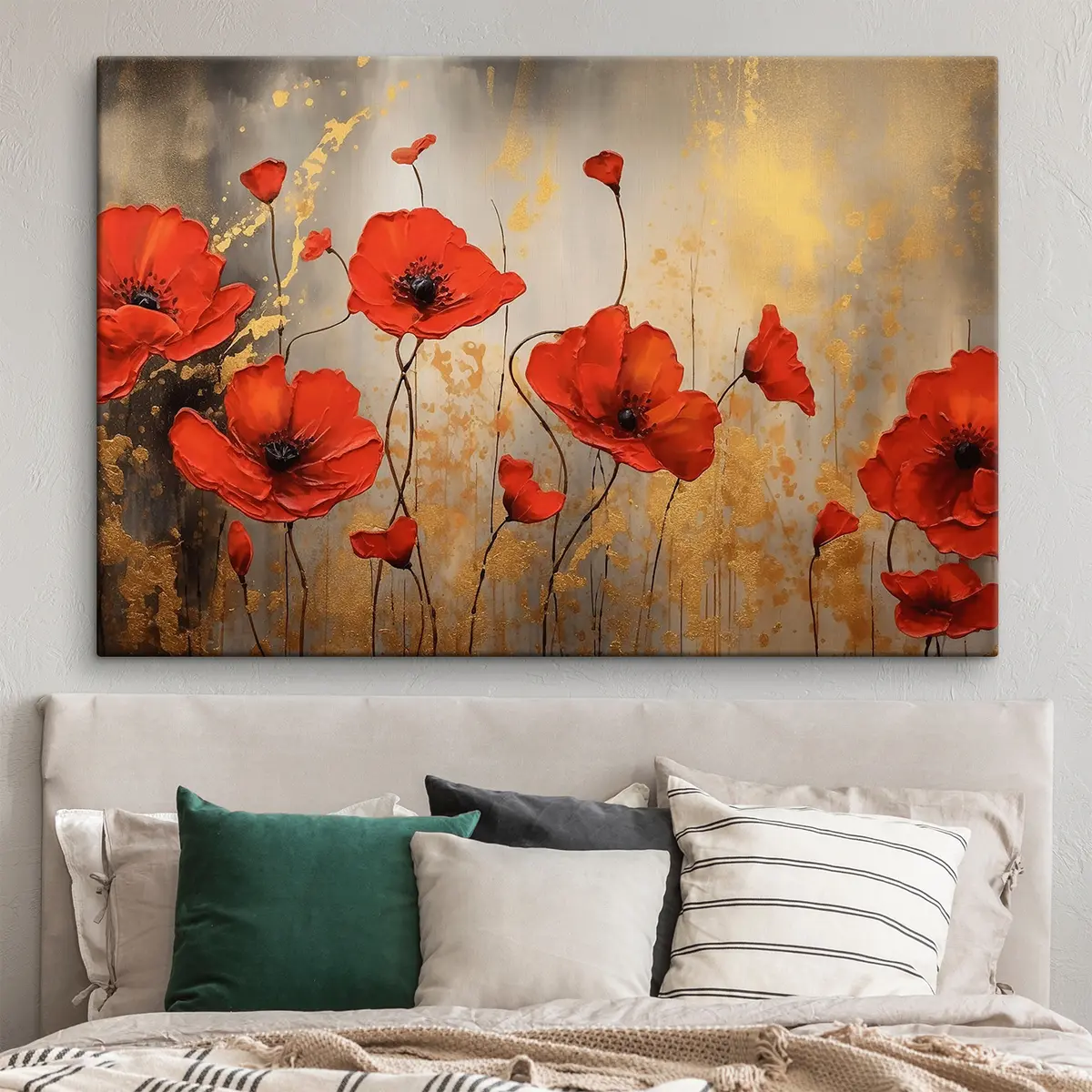 Wandbilder Mohnblumen auf einem braunen abstrakten Hintergrund Art. s35515