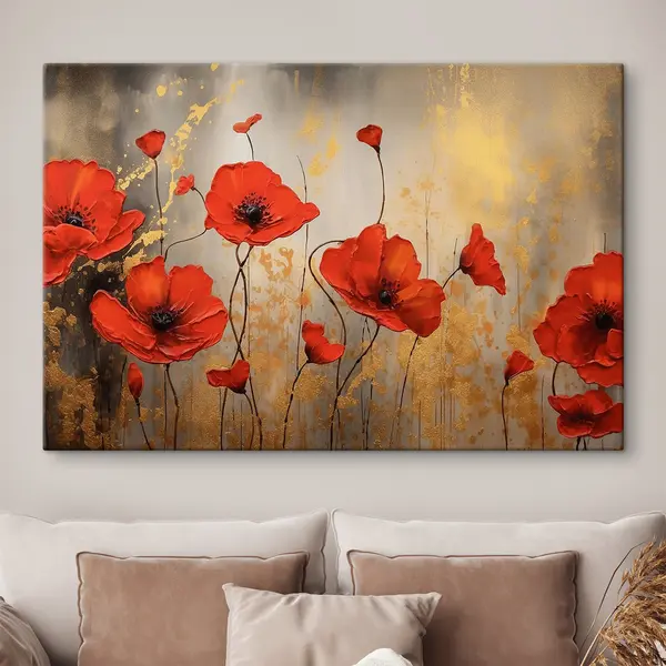 Wandbilder Mohnblumen auf einem braunen abstrakten Hintergrund Art. s35515