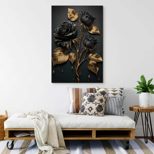 Wandbilder Schwarze Rose mit Blättern Art. s33700