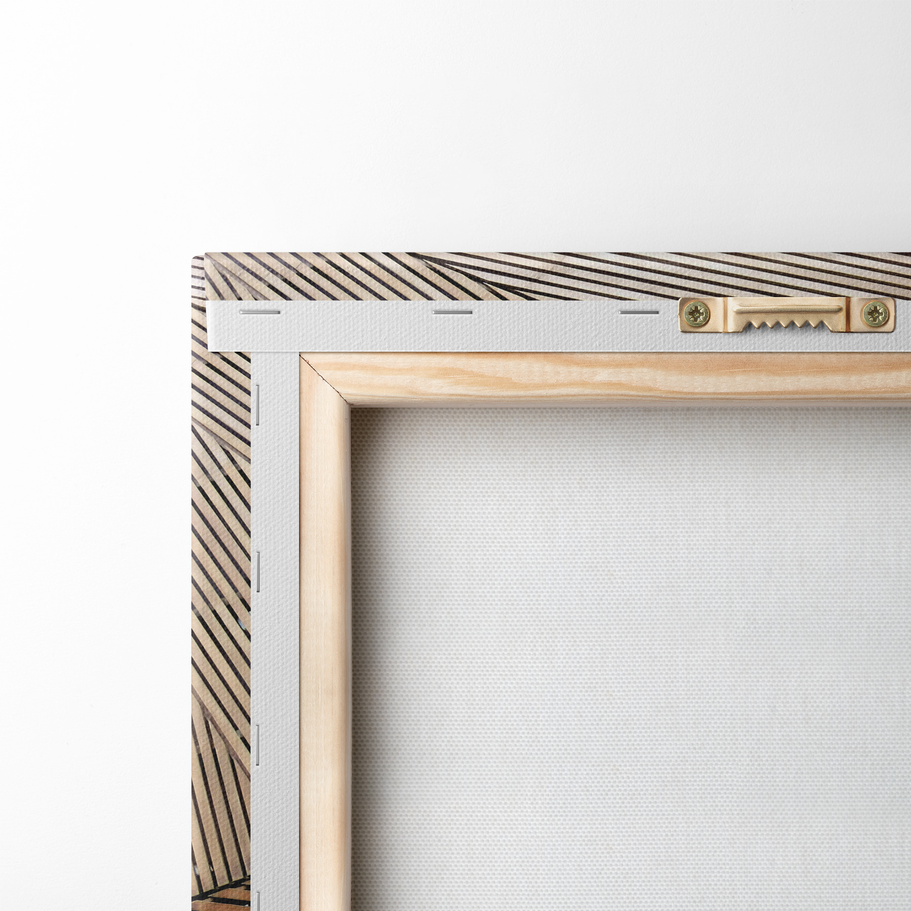 Um die Leinwand auf Keilrahmen zu spannen, ohne das Bild zu beschädigen, verwenden wir ein gespiegeltes Bild.