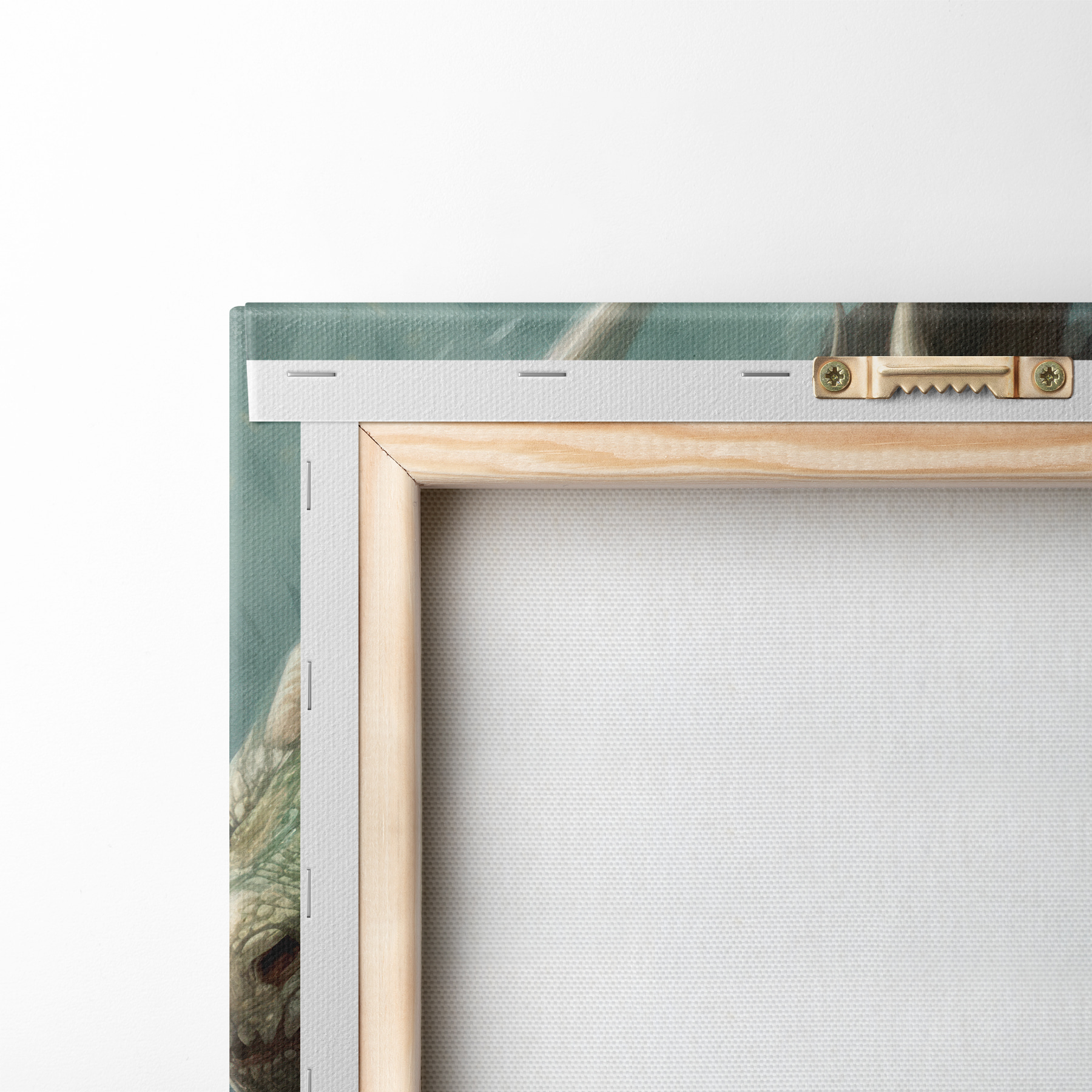 Um die Leinwand auf Keilrahmen zu spannen, ohne das Bild zu beschädigen, verwenden wir ein gespiegeltes Bild.