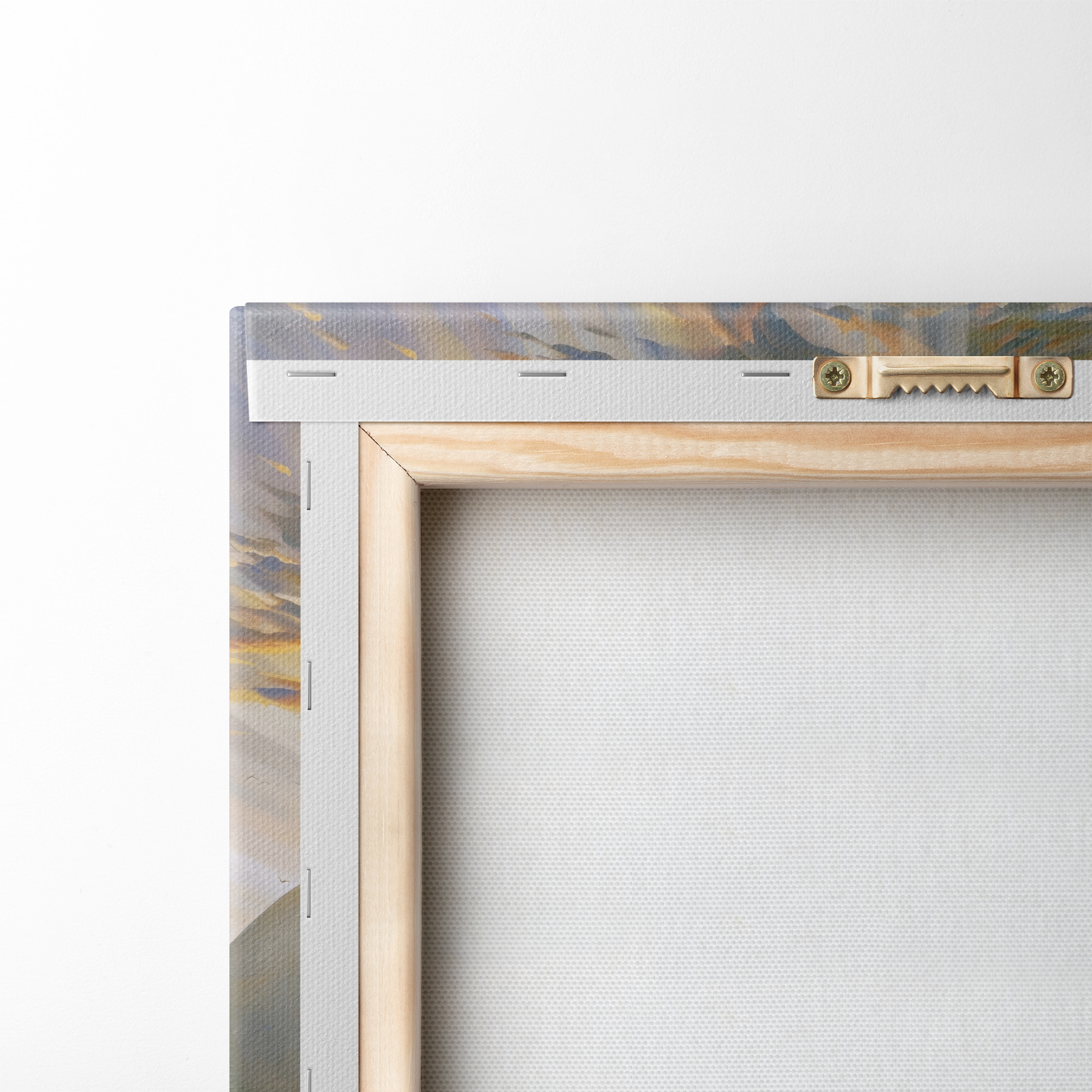 Um die Leinwand auf Keilrahmen zu spannen, ohne das Bild zu beschädigen, verwenden wir ein gespiegeltes Bild.