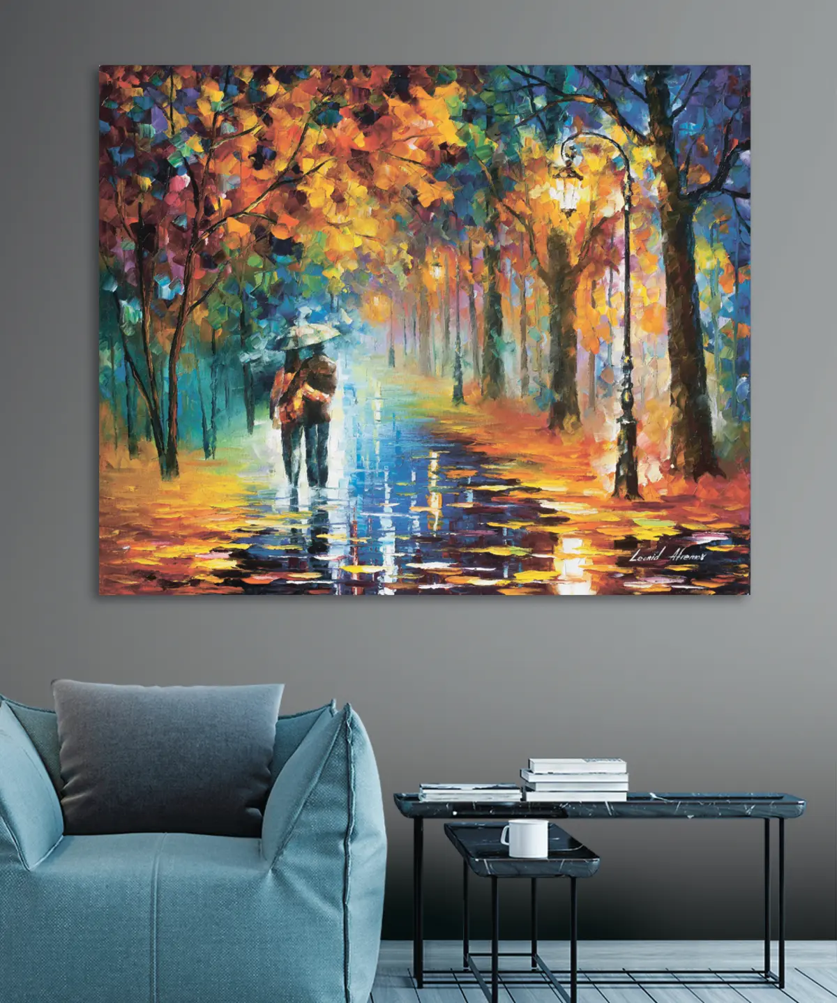 Wandbilder Pärchen unter einem Regenschirm, Herbst Art. s15186