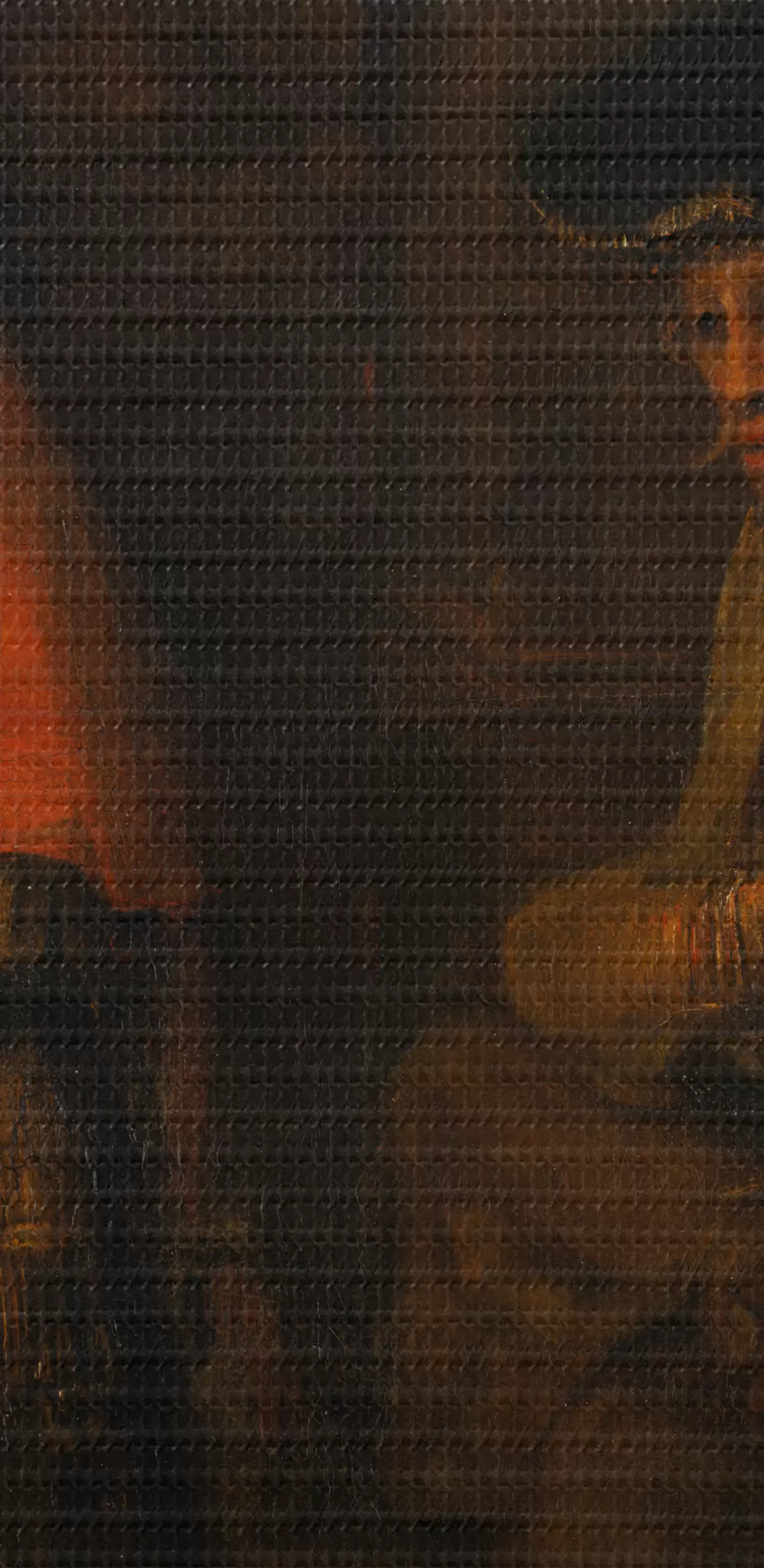 Um die Leinwand auf Keilrahmen zu spannen, ohne das Bild zu beschädigen, verwenden wir ein gespiegeltes Bild.