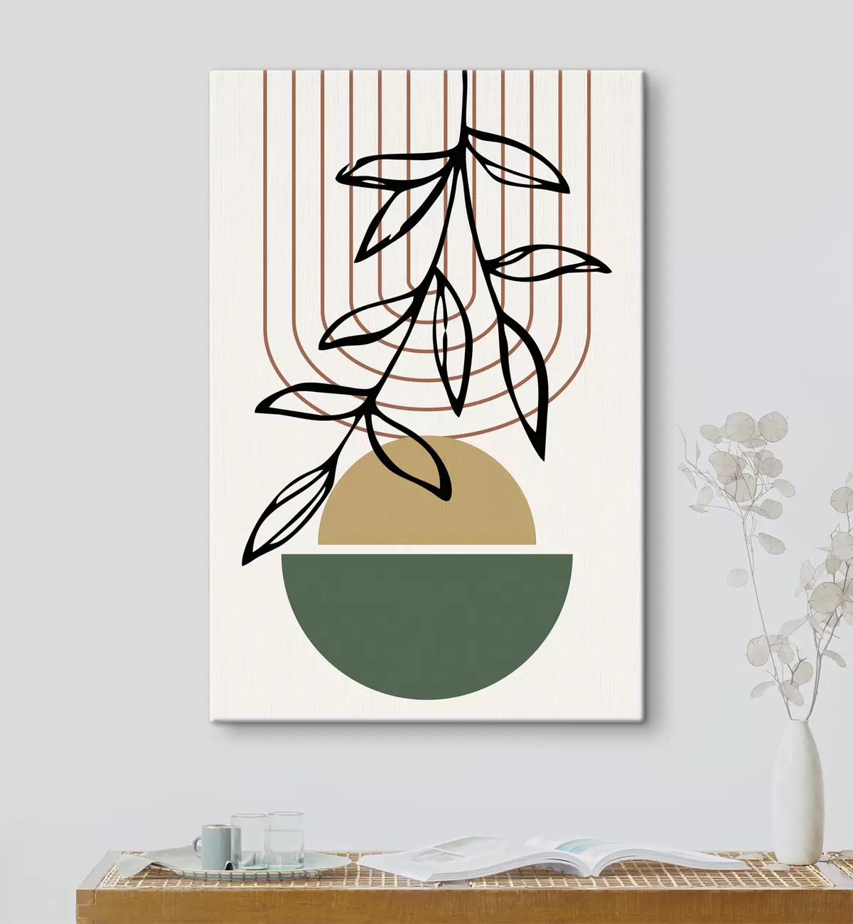 Wandbilder Geometrische Halbkreise mit hängender abstrakter Pflanze und Spirale s36188