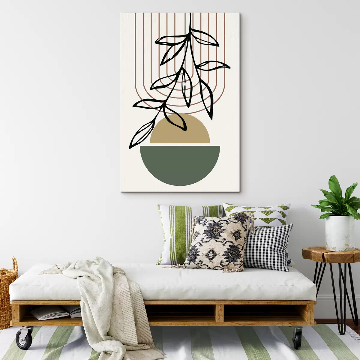 Wandbilder Geometrische Halbkreise mit hängender abstrakter Pflanze und Spirale Art. s36188
