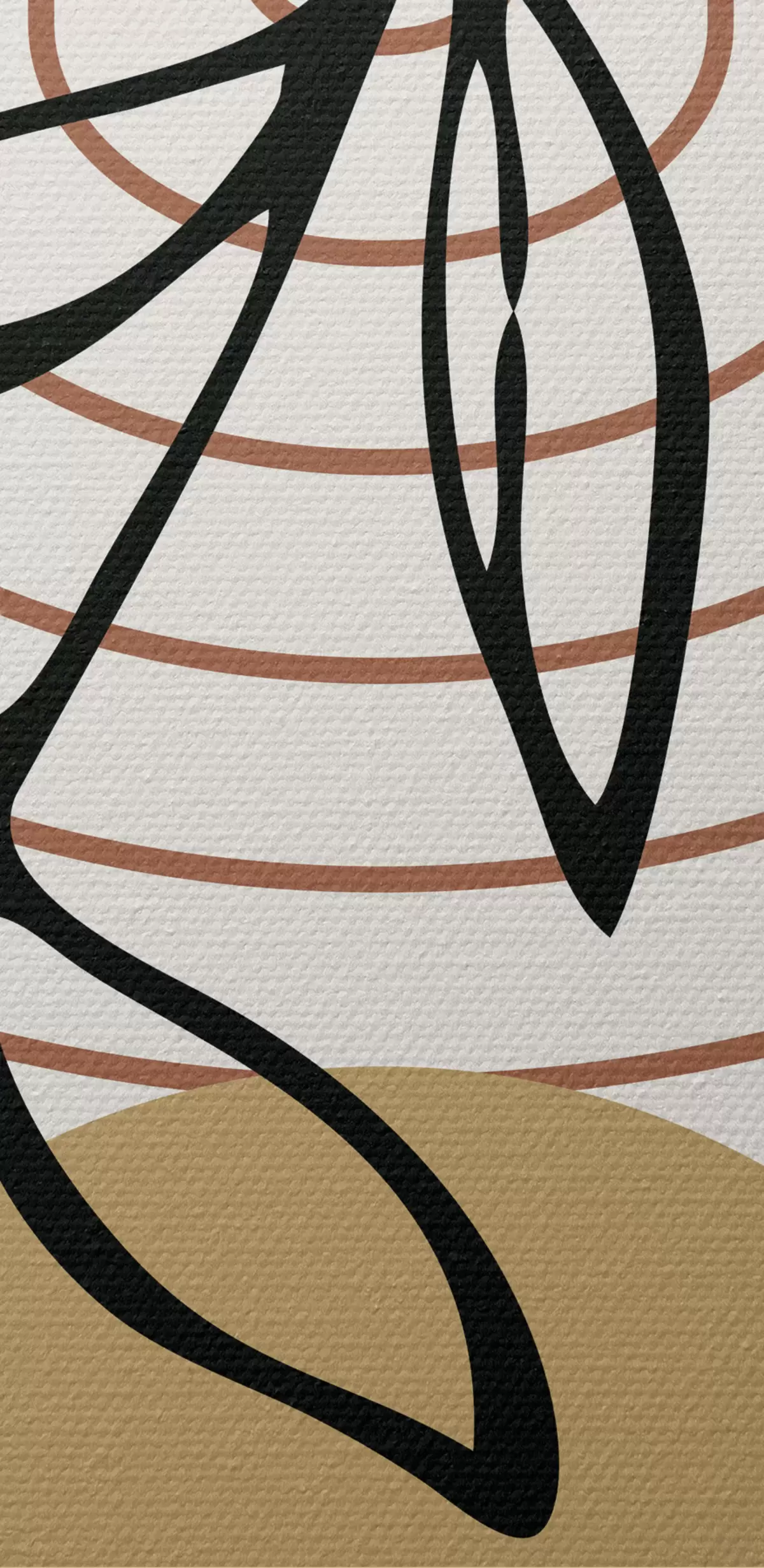 Wandbilder Geometrische Halbkreise mit hängender abstrakter Pflanze und Spirale s36188