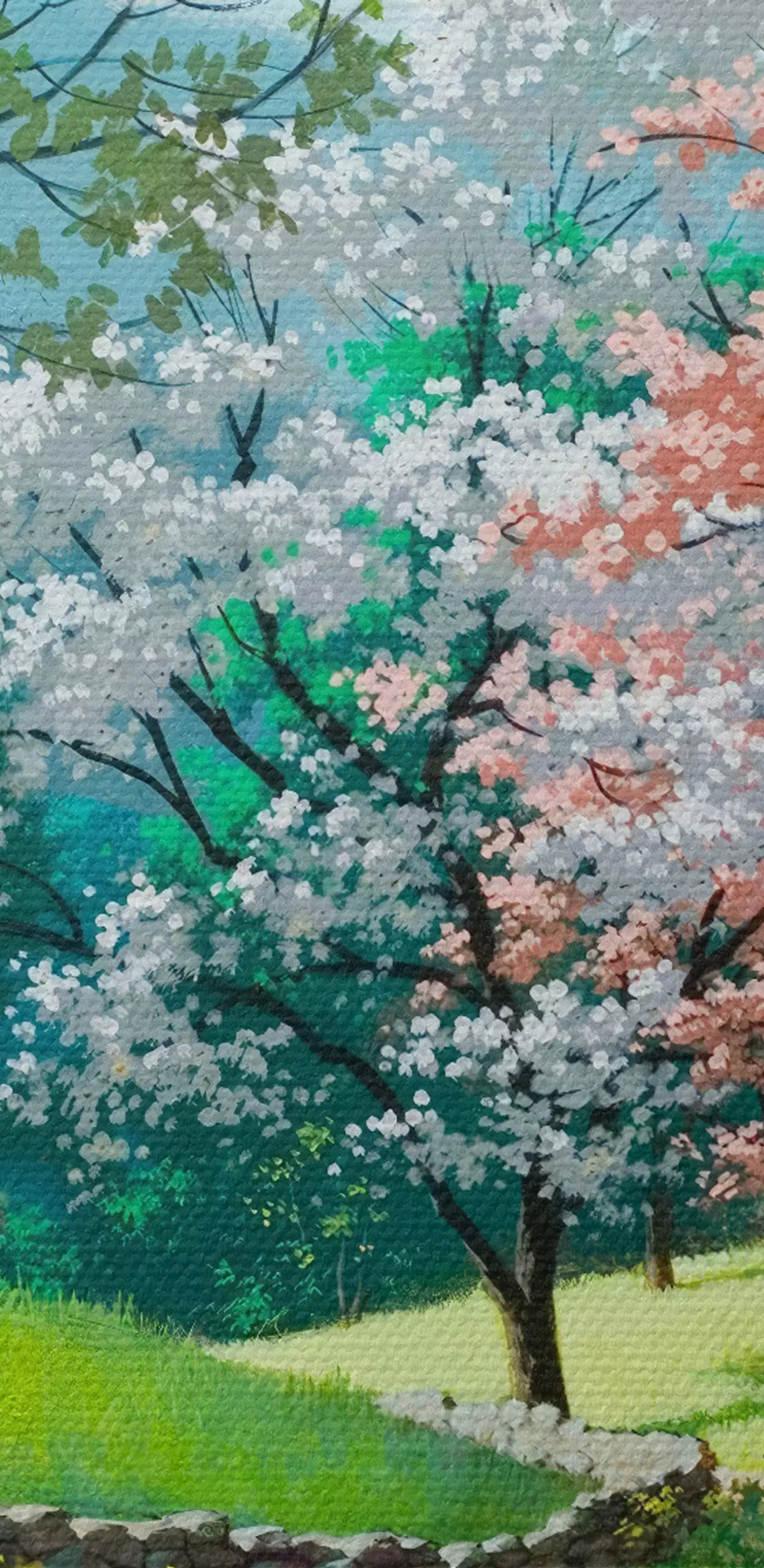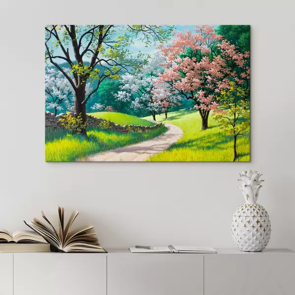 Wandbilder Blühende Obstbäume, Dorfweg Art. s15350