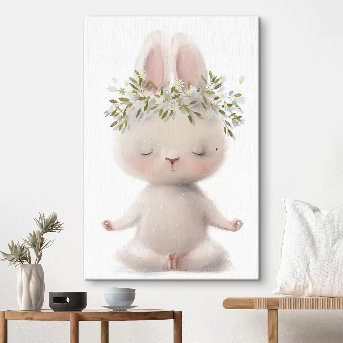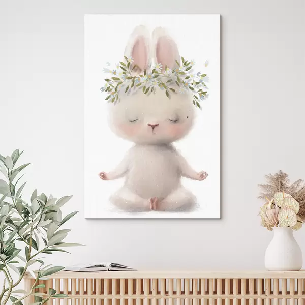 Wandbilder Friedliches Häschen mit Blumenkranz s35005