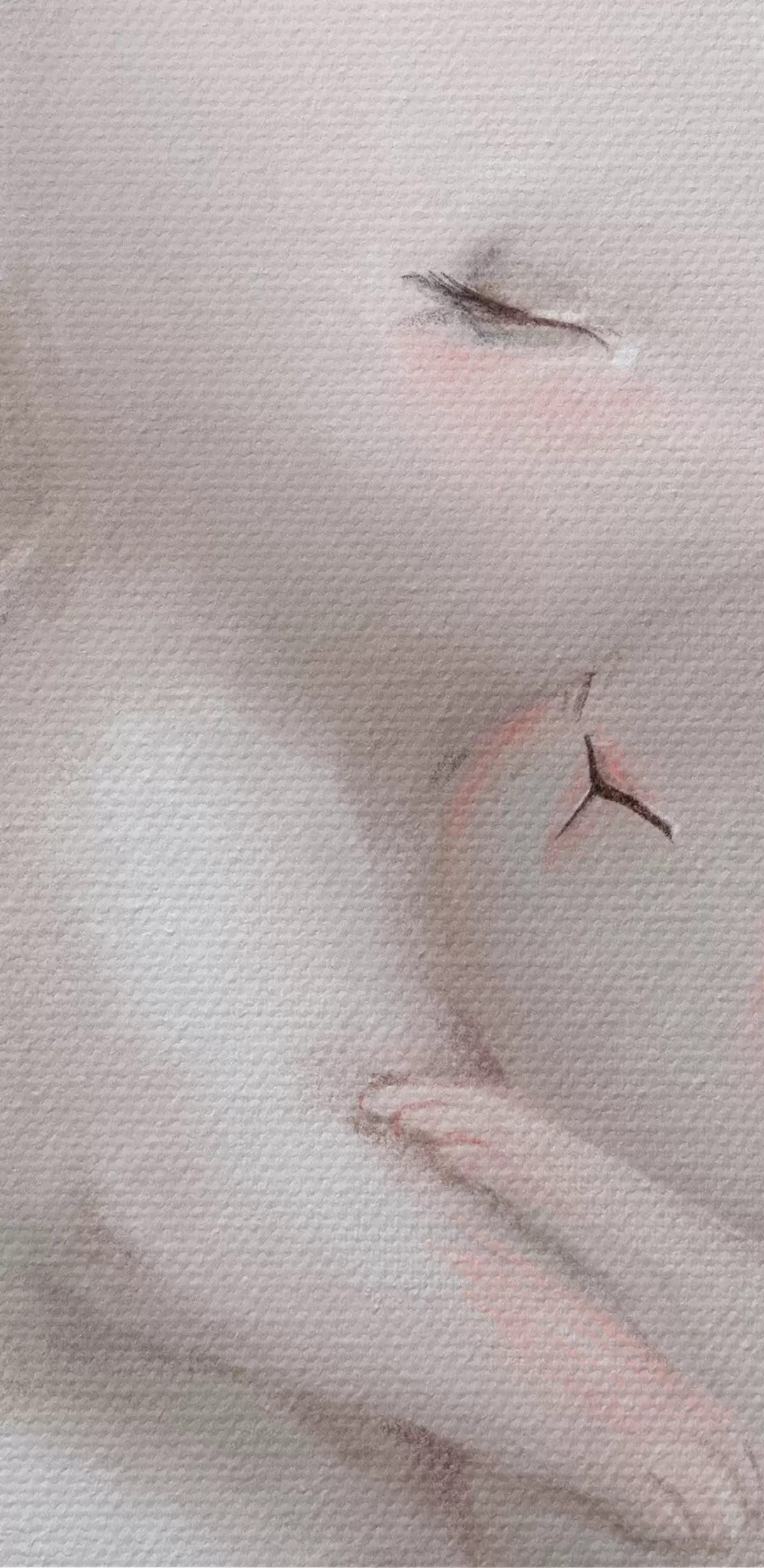 Um die Leinwand auf Keilrahmen zu spannen, ohne das Bild zu beschädigen, verwenden wir ein gespiegeltes Bild.