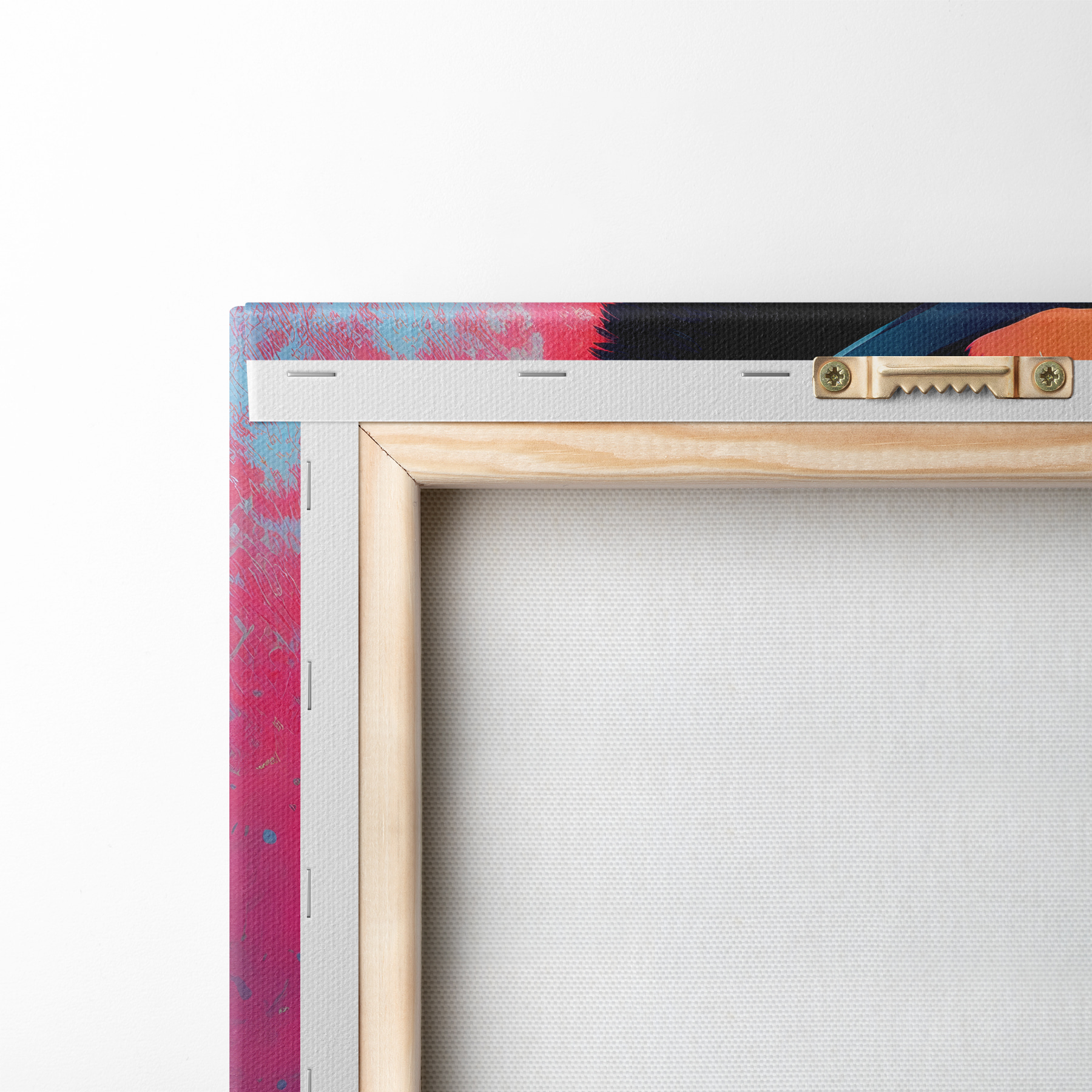 Um die Leinwand auf Keilrahmen zu spannen, ohne das Bild zu beschädigen, verwenden wir ein gespiegeltes Bild.