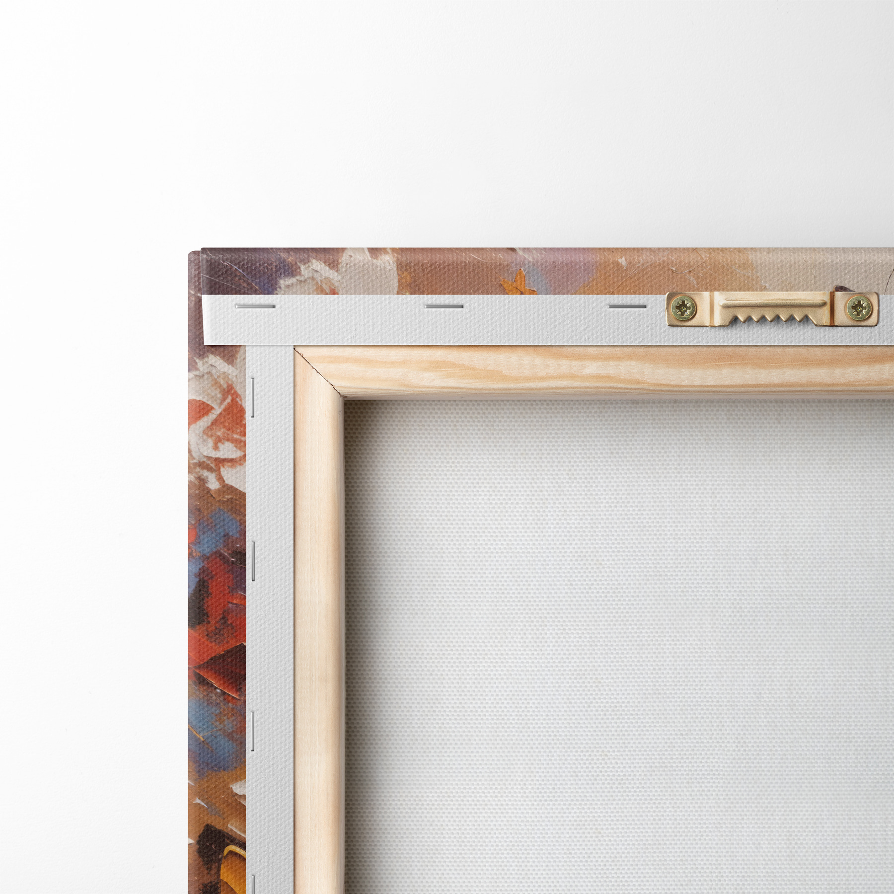Um die Leinwand auf Keilrahmen zu spannen, ohne das Bild zu beschädigen, verwenden wir ein gespiegeltes Bild.