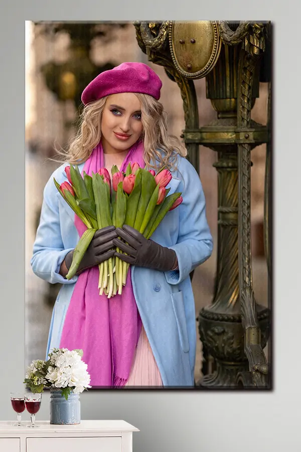 Drei Materialtypen stehen zur Verfügung: Economic Canvas - ein dichtes und haltbares Material für den Digitaldruck, identisch mit Malerleinwand, wasserfeste Oberfläche, realistische Wiedergabe von Details, mittelkörniges Material. Premium Canvas - die Textur ähnelt der einer Malerleinwand (verwobene kleine Fäden). Weiche, detaillierte Wiedergabe des Bildes auf einer matten Oberfläche. Eco-Premium - hochwertiges Gewebe aus 100% Baumwolle. Dank der natürlichen Baumwollfasern ist das Material langlebig und verschleißfest. Hervorragende Farbwiedergabe und Detailtreue.