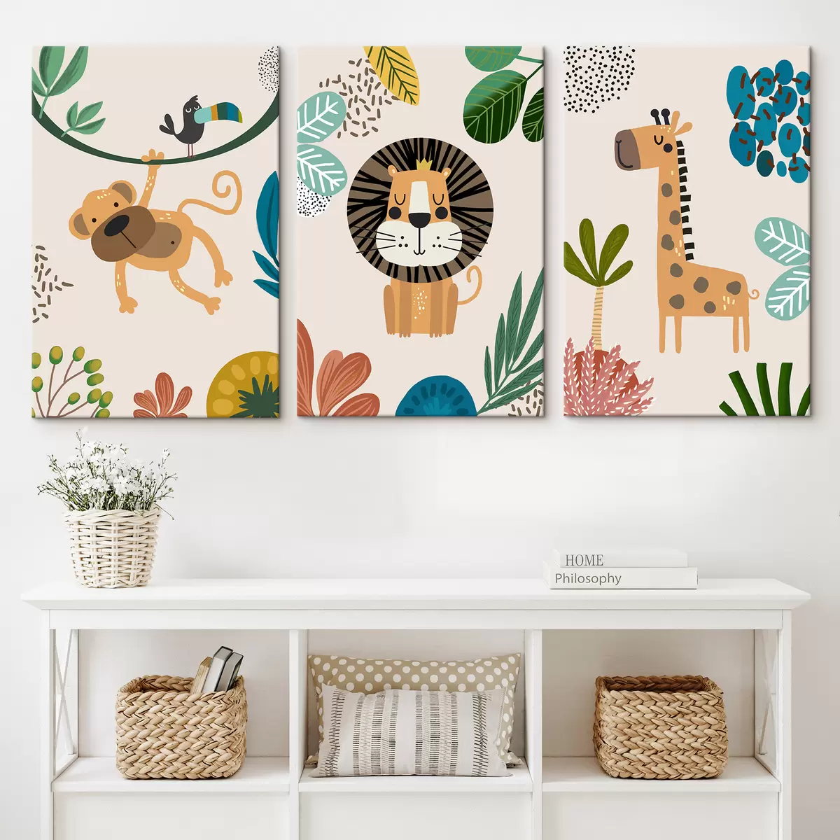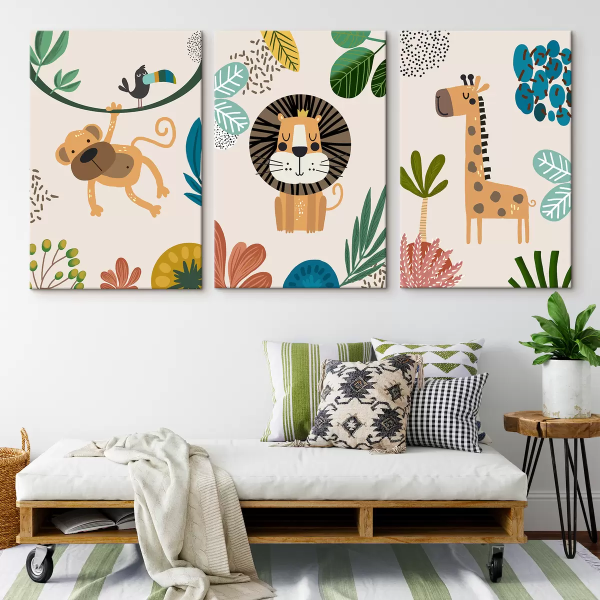 Wandbilder Tiere im Dschungel im Safari-Stil, Boho: Affe, Löwe, Giraffe Art. m00332