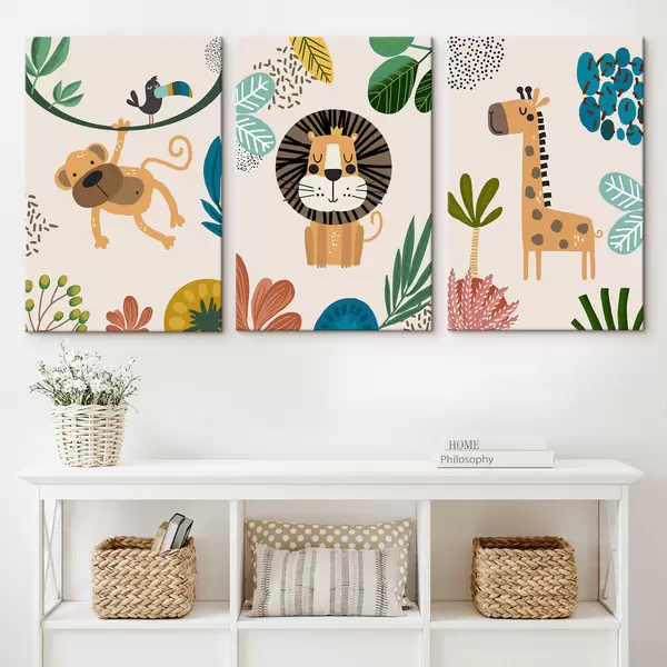 Wandbilder Tiere im Dschungel im Safari-Stil, Boho: Affe, Löwe, Giraffe Art. m00332