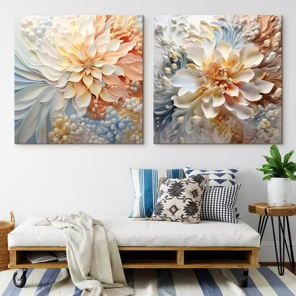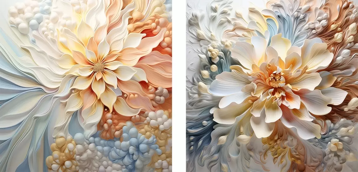 Drei Materialtypen stehen zur Verfügung: Economic Canvas - ein dichtes und haltbares Material für den Digitaldruck, identisch mit Malerleinwand, wasserfeste Oberfläche, realistische Wiedergabe von Details, mittelkörniges Material. Premium Canvas - die Textur ähnelt der einer Malerleinwand (verwobene kleine Fäden). Weiche, detaillierte Wiedergabe des Bildes auf einer matten Oberfläche. Eco-Premium - hochwertiges Gewebe aus 100% Baumwolle. Dank der natürlichen Baumwollfasern ist das Material langlebig und verschleißfest. Hervorragende Farbwiedergabe und Detailtreue.