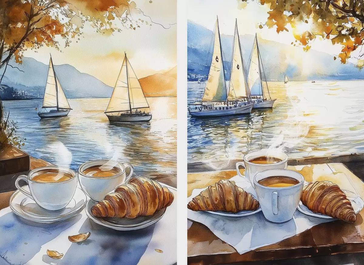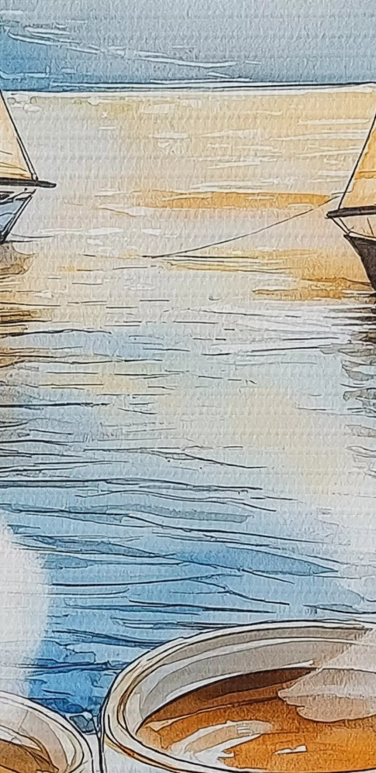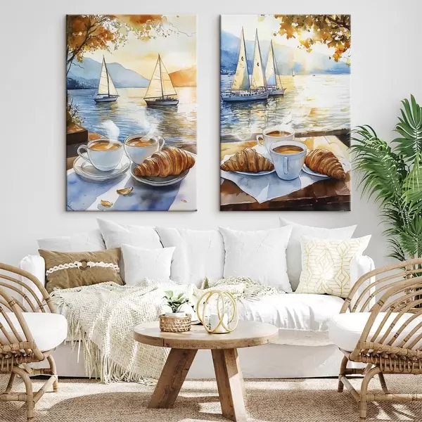Wandbilder Sonnenuntergang auf dem See mit Ups of Coffee, Segelboote, Natur, Reisen Art. m00407