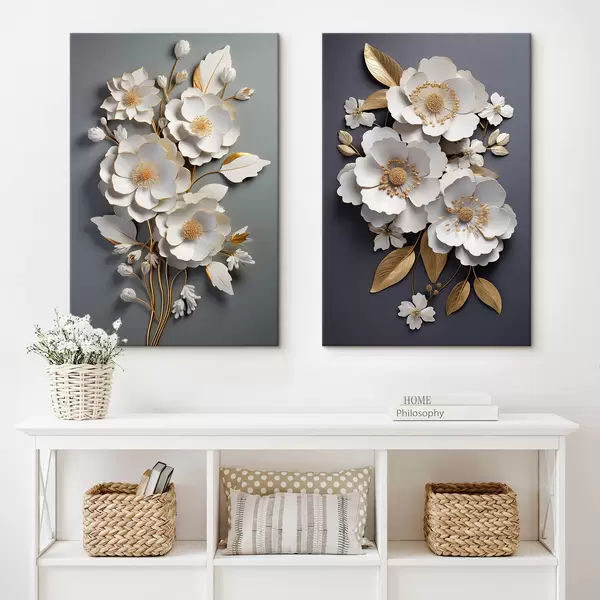 Wandbilder Eine Komposition von Blumenzweigen auf einem dunklen Hintergrund Art. m00423