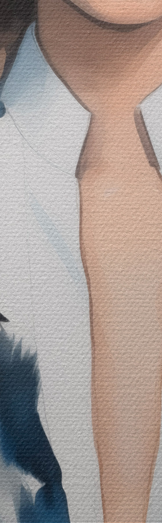 Um die Leinwand auf Keilrahmen zu spannen, ohne das Bild zu beschädigen, verwenden wir ein gespiegeltes Bild.