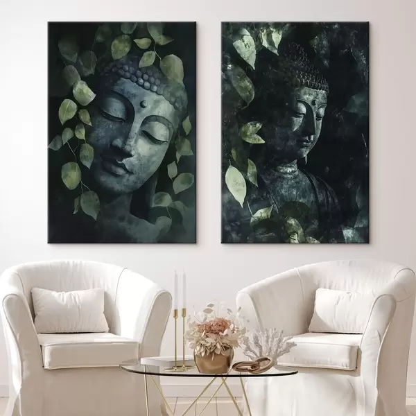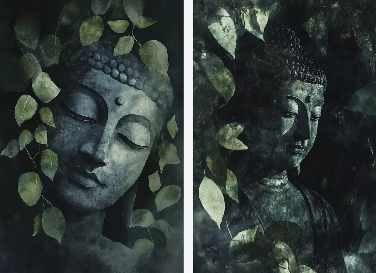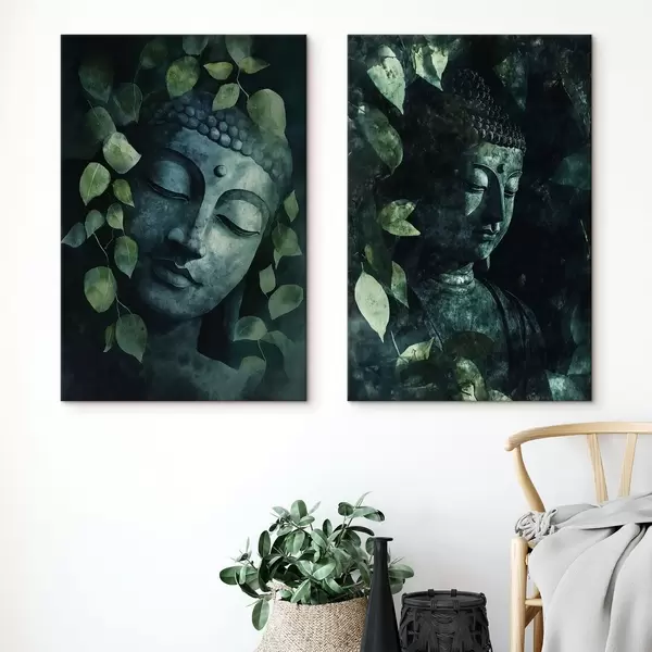 Wandbilder Grüner Buddha in tropischen Blättern, Aquarellstil m00451