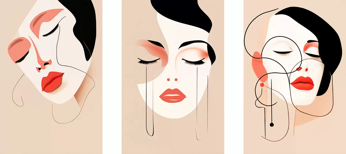 Wandbilder Harmonie, drei Gesichter, leuchtende Farben m00454