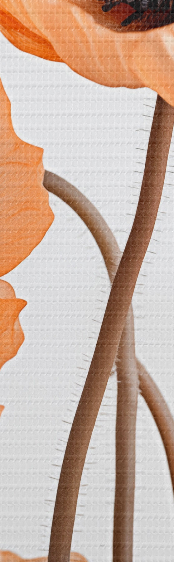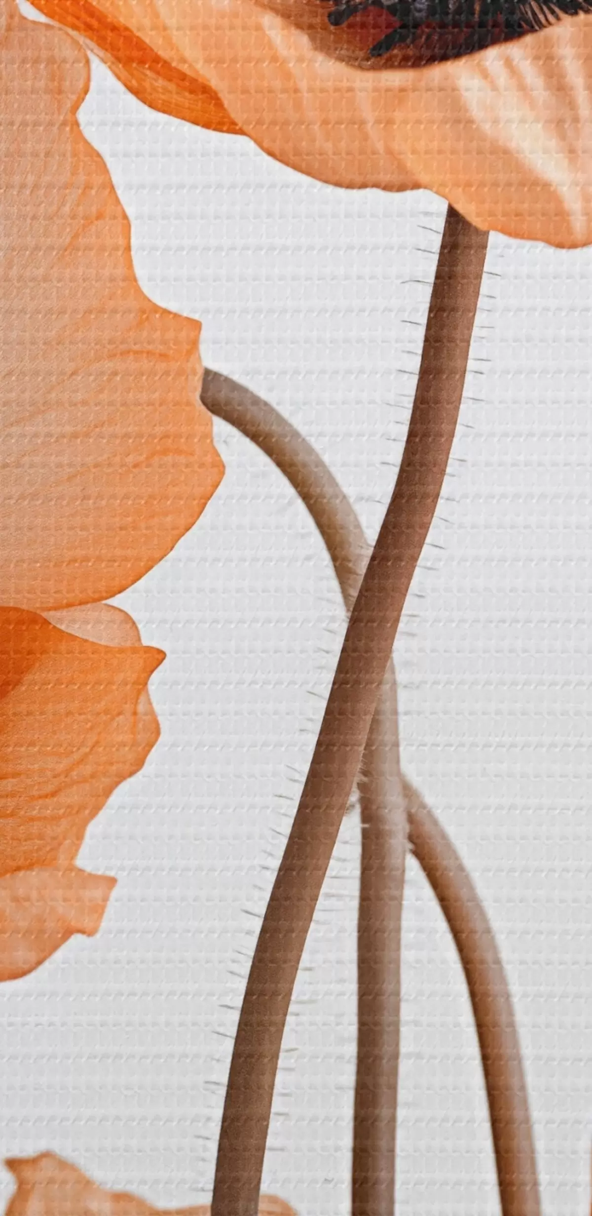Wandbilder Orangefarbene Mohnblumen, getrocknete Blumen vor einem hellen Hintergrund, weiche Beleuchtung, zarte Blütenblätter, Blumenarrangement Art. m00518