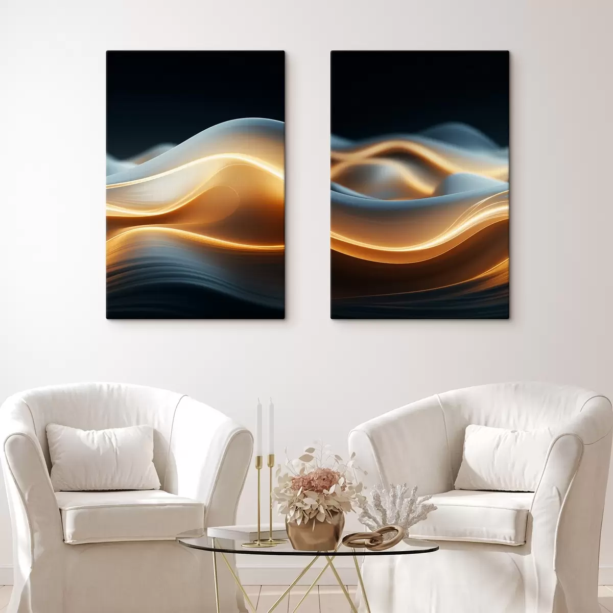 Wandbilder Abstrakte fließende Formen mit orangefarbenen Linien, glatte Kurven und Linien, dynamische Komposition, dunkler Hintergrund Art. m00526