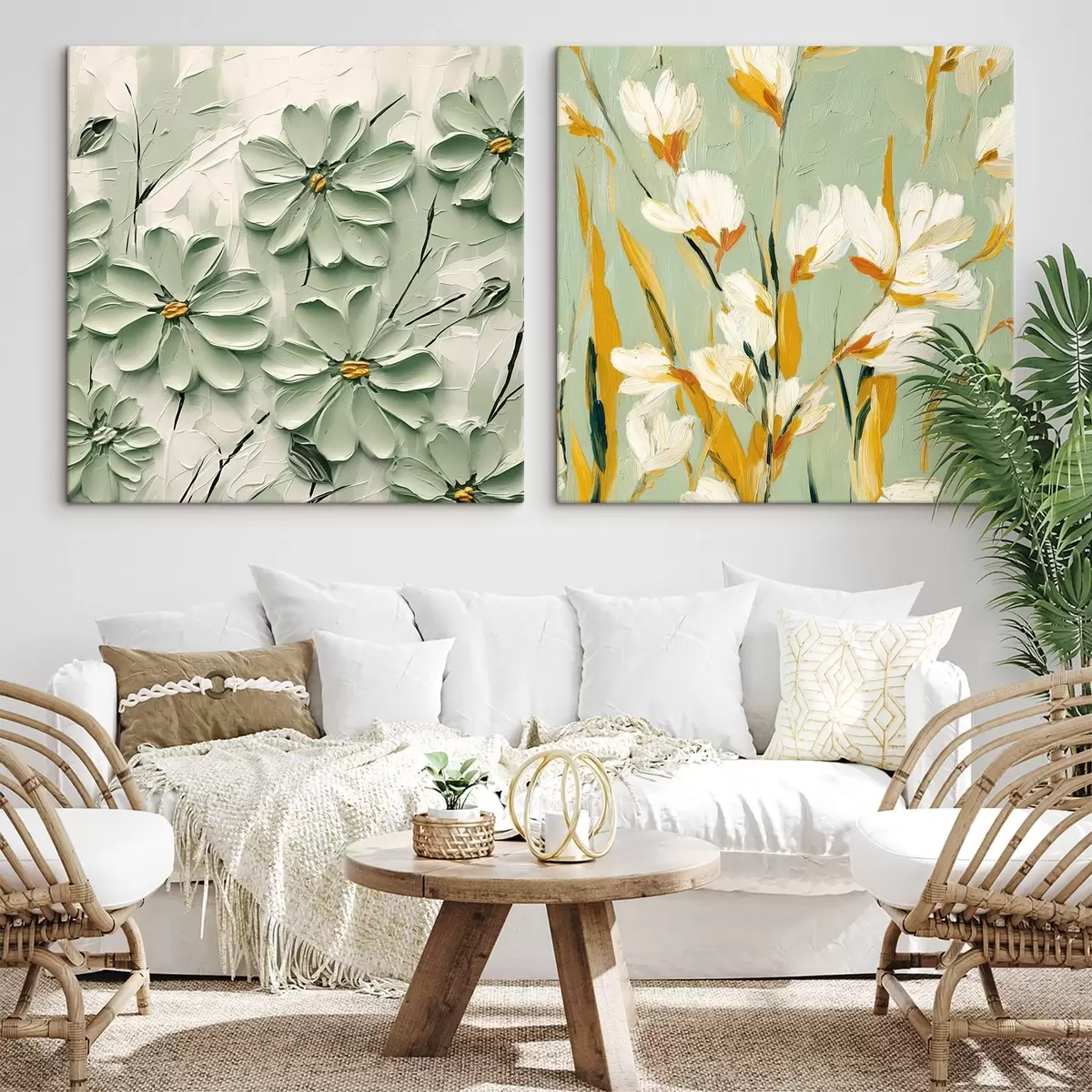 Wandbilder Blumenwiese: Kunstkomposition mit volumetrischen Blumen auf einem pastellfarbenen Hintergrund Art. m00567