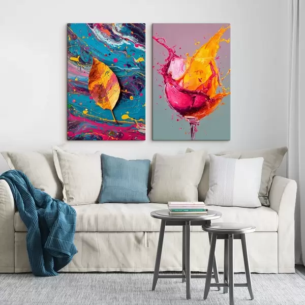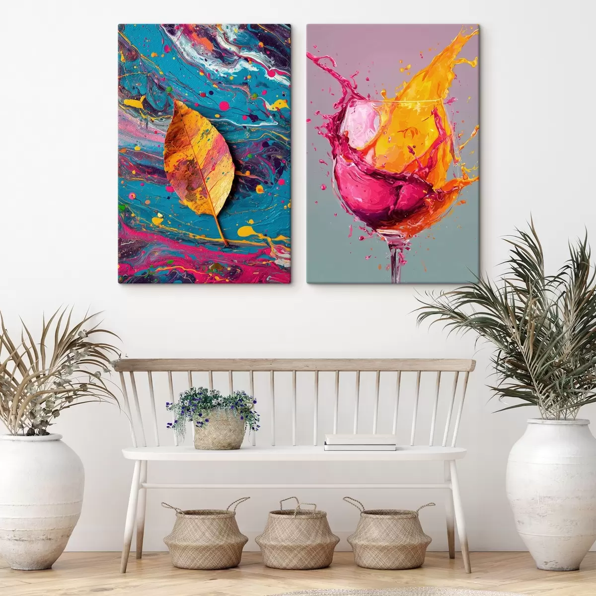 Wandbilder Expressive Abstraktion mit Elementen aus der Natur und Getränken Art. m00570