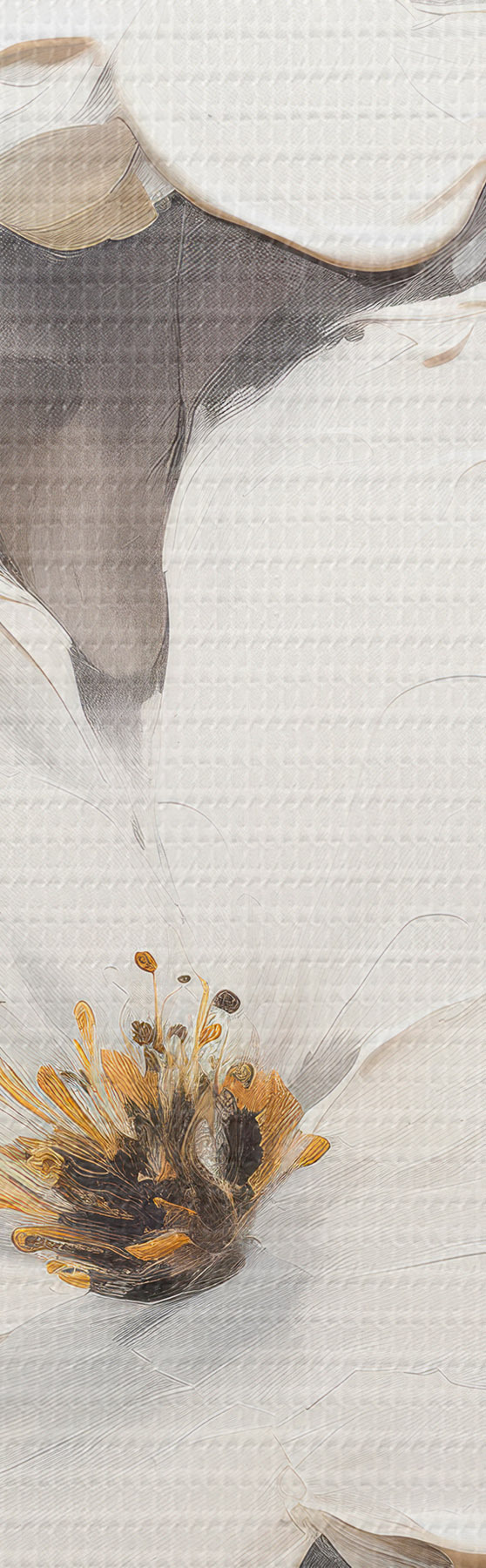 Wandbilder Künstlerische Komposition mit weißen Blumen und strukturierter Oberfläche im minimalistischen Stil m00574