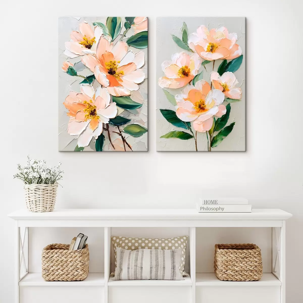 Wandbilder Impasto-Malerei, die einen großen Blumenstrauß und einzelne Blumen kombiniert m00579