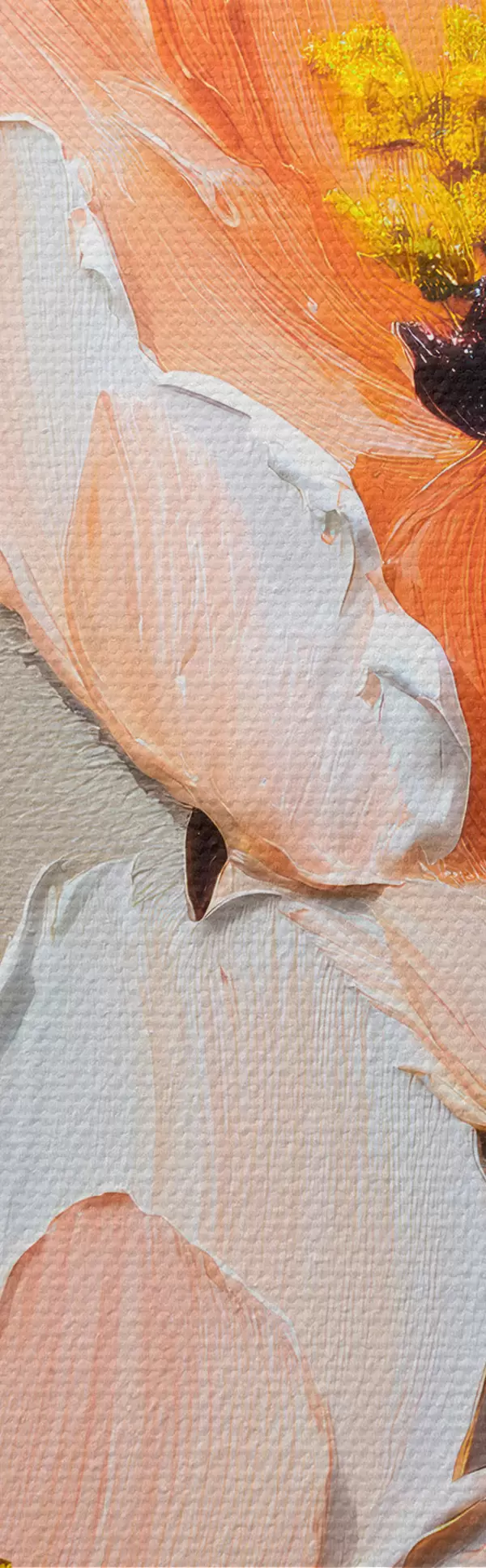 Drei Materialtypen stehen zur Verfügung: Economic Canvas - ein dichtes und haltbares Material für den Digitaldruck, identisch mit Malerleinwand, wasserfeste Oberfläche, realistische Wiedergabe von Details, mittelkörniges Material. Premium Canvas - die Textur ähnelt der einer Malerleinwand (verwobene kleine Fäden). Weiche, detaillierte Wiedergabe des Bildes auf einer matten Oberfläche. Eco-Premium - hochwertiges Gewebe aus 100% Baumwolle. Dank der natürlichen Baumwollfasern ist das Material langlebig und verschleißfest. Hervorragende Farbwiedergabe und Detailtreue.