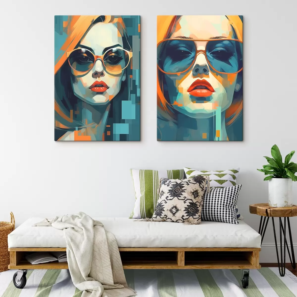 Wandbilder Frauenporträts mit Brille im Stil der digitalen Abstraktion m00587