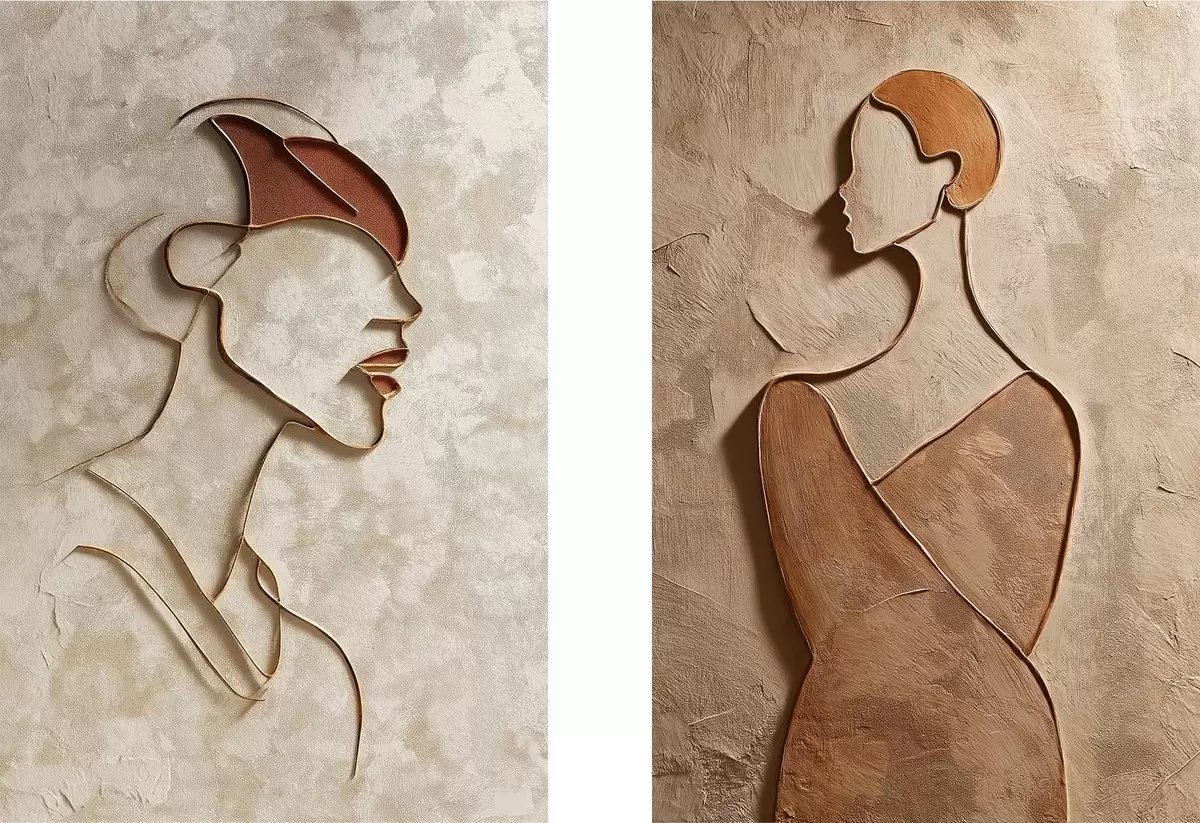 Wandbilder Reliefsilhouetten von Menschen in einem minimalistischen Stil Art. m00596