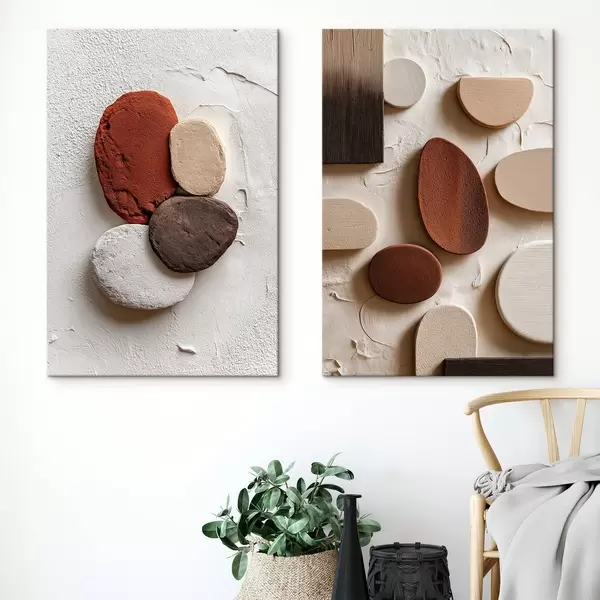 Wandbilder Abstrakte Kompositionen mit volumetrischen geometrischen Formen auf einem strukturierten Hintergrund Art. m00597