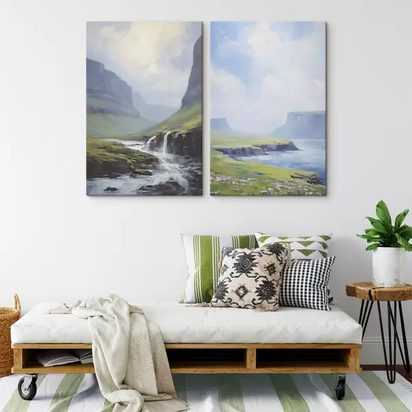 Drei Materialtypen stehen zur Verfügung: Economic Canvas - ein dichtes und haltbares Material für den Digitaldruck, identisch mit Malerleinwand, wasserfeste Oberfläche, realistische Wiedergabe von Details, mittelkörniges Material. Premium Canvas - die Textur ähnelt der einer Malerleinwand (verwobene kleine Fäden). Weiche, detaillierte Wiedergabe des Bildes auf einer matten Oberfläche. Eco-Premium - hochwertiges Gewebe aus 100% Baumwolle. Dank der natürlichen Baumwollfasern ist das Material langlebig und verschleißfest. Hervorragende Farbwiedergabe und Detailtreue.