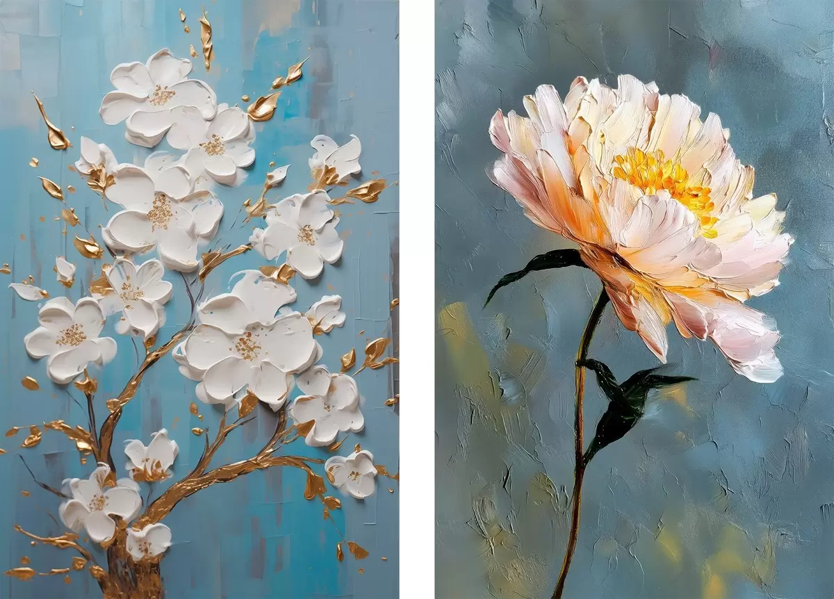 Wandbilder Blühender Zweig und Pfingstrose: Reliefkomposition Art. m00637