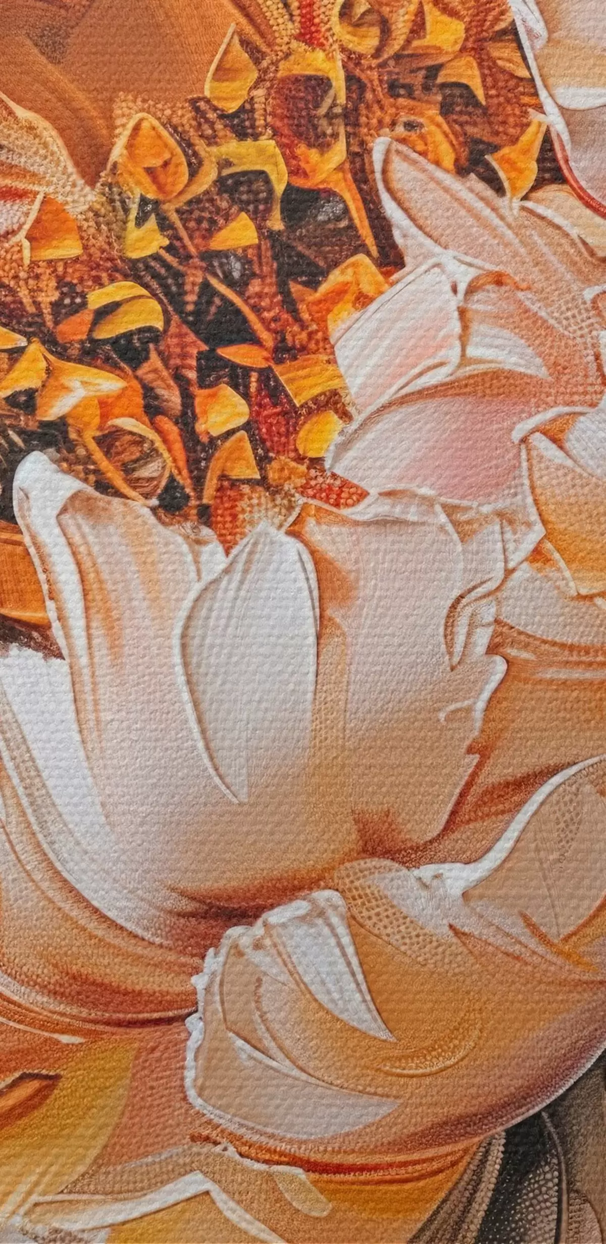 Drei Materialtypen stehen zur Verfügung: Economic Canvas - ein dichtes und haltbares Material für den Digitaldruck, identisch mit Malerleinwand, wasserfeste Oberfläche, realistische Wiedergabe von Details, mittelkörniges Material. Premium Canvas - die Textur ähnelt der einer Malerleinwand (verwobene kleine Fäden). Weiche, detaillierte Wiedergabe des Bildes auf einer matten Oberfläche. Eco-Premium - hochwertiges Gewebe aus 100% Baumwolle. Dank der natürlichen Baumwollfasern ist das Material langlebig und verschleißfest. Hervorragende Farbwiedergabe und Detailtreue.