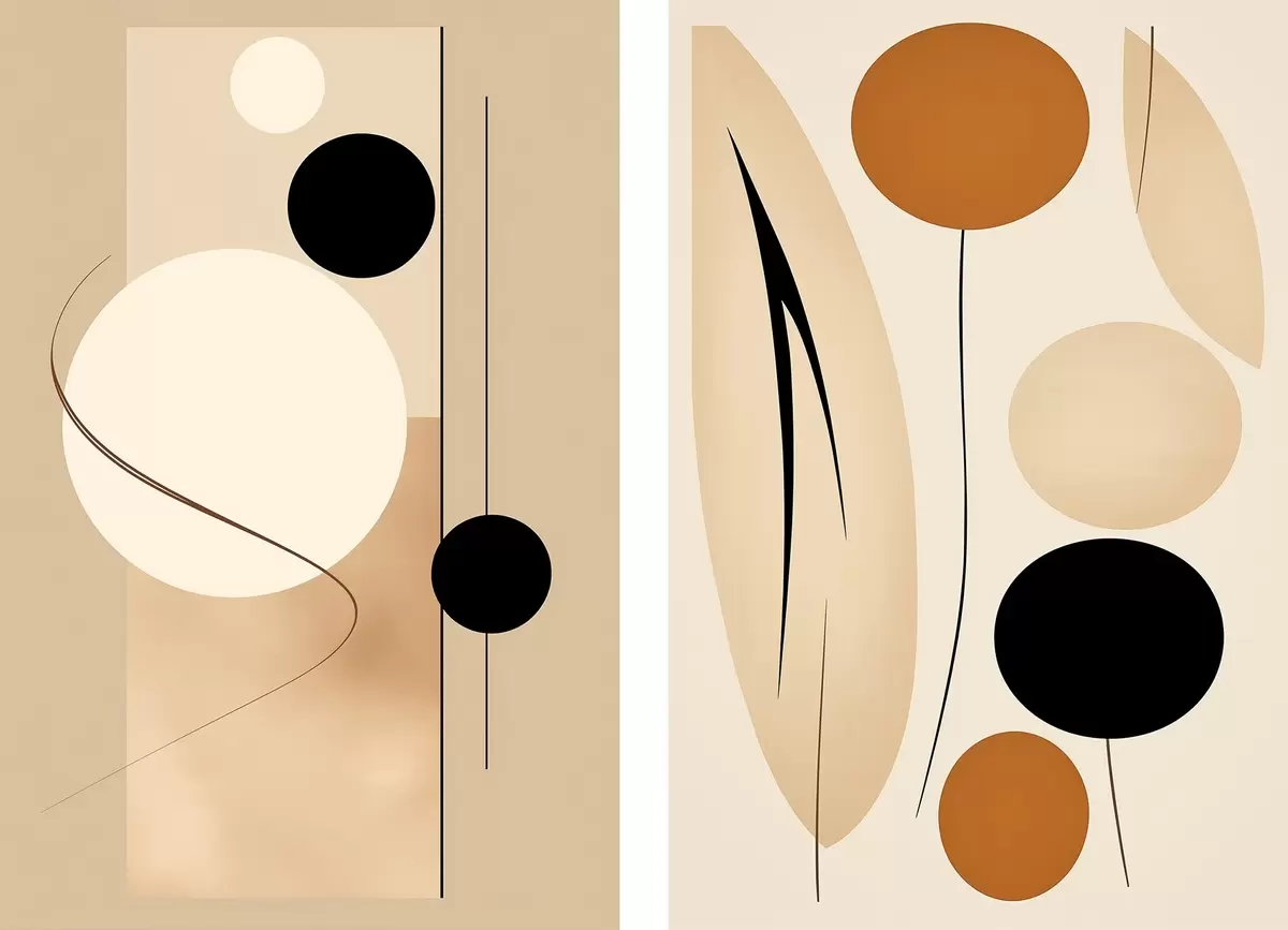 Wandbilder Minimalistische geometrische Kreise in Beige- und Schwarztönen Art. m00685